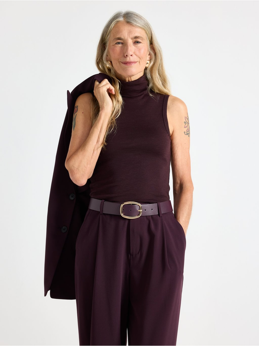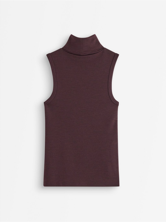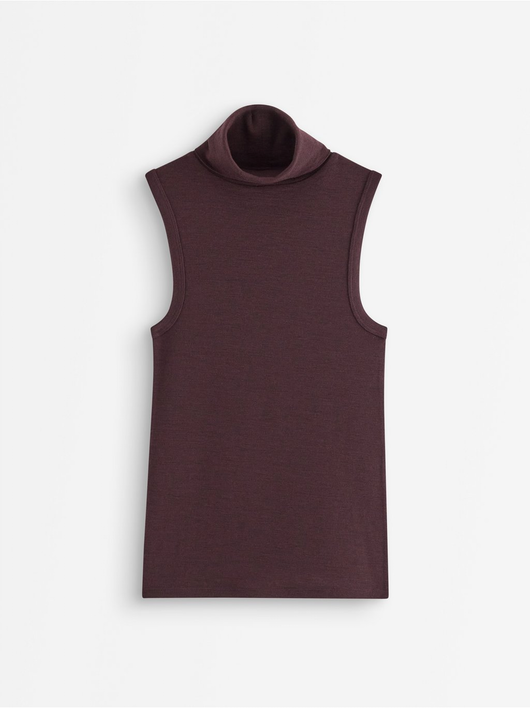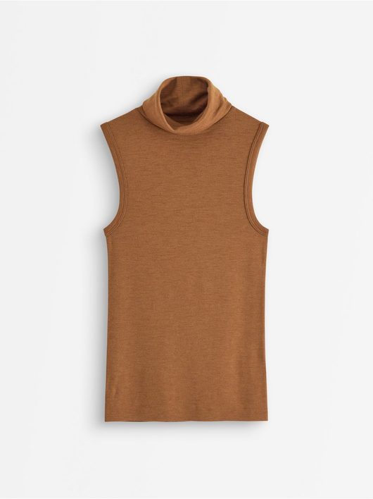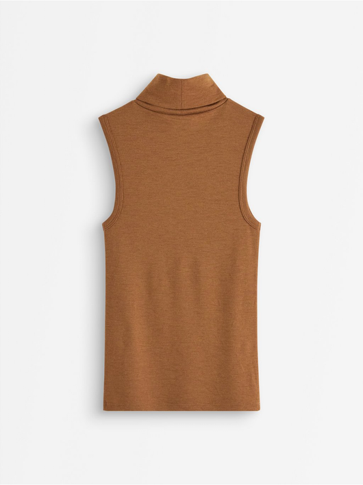 Sleeveless roll neck top in wool.