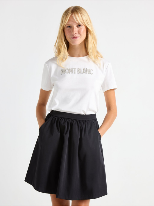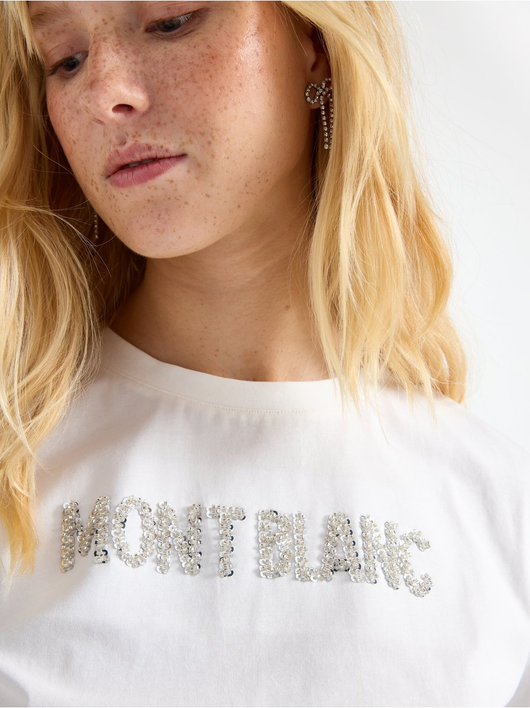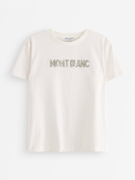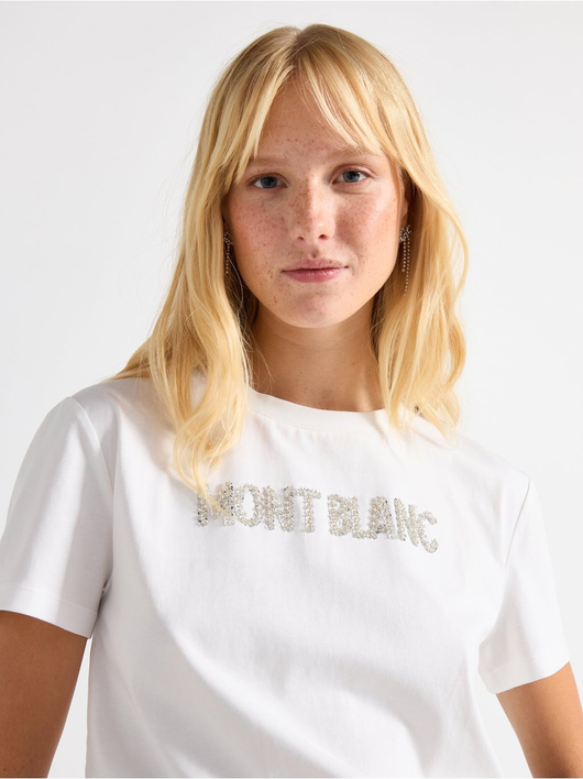 T-shirt with a sequin text motif at the front.