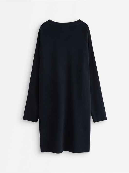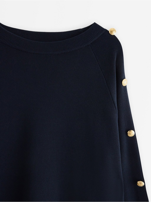 Rib knitted mini dress with gold coloured buttons at sleeves.