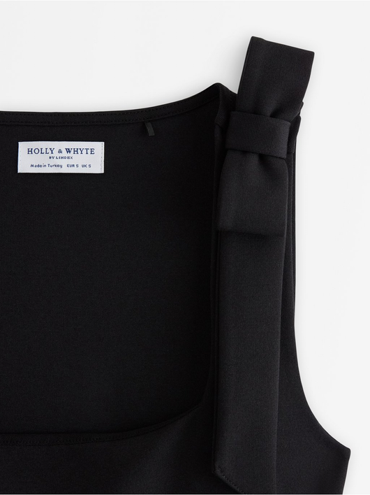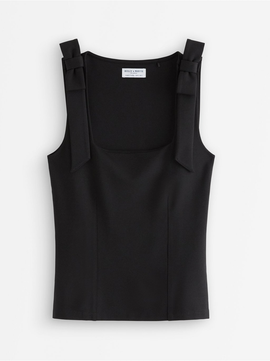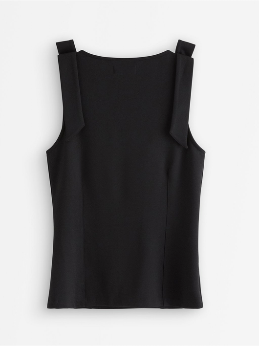 Sleeveless top with a square neckline and bow details.