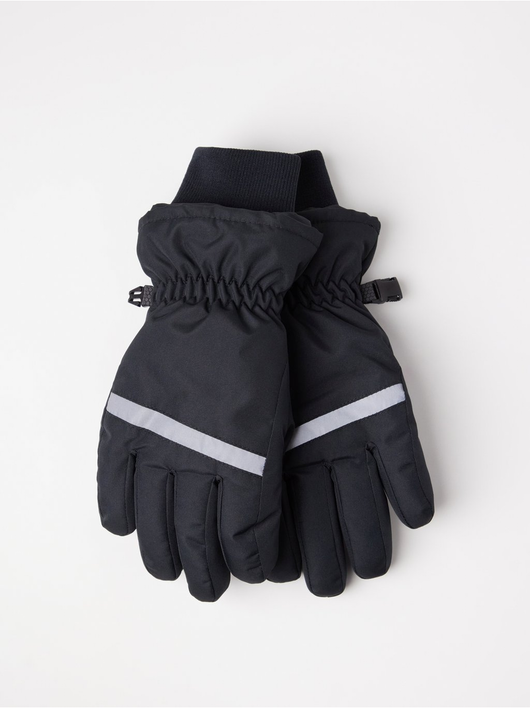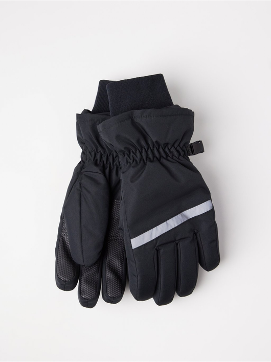 These warm gloves will keep the hands dry and comfortable in cold weather conditions. They are windproof, waterproof, have a lightweight padding and a soft fleece lining. They feature a reflective detail at the front, elastic at the wrists with ribbed cuffs and a grip-friendly surface on the palm.