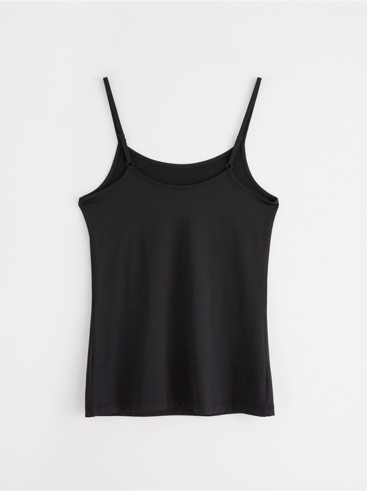 Soft camisole in microfiber with figure fit and slim, adjustable shoulder straps.