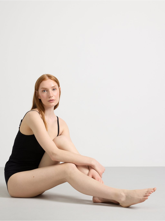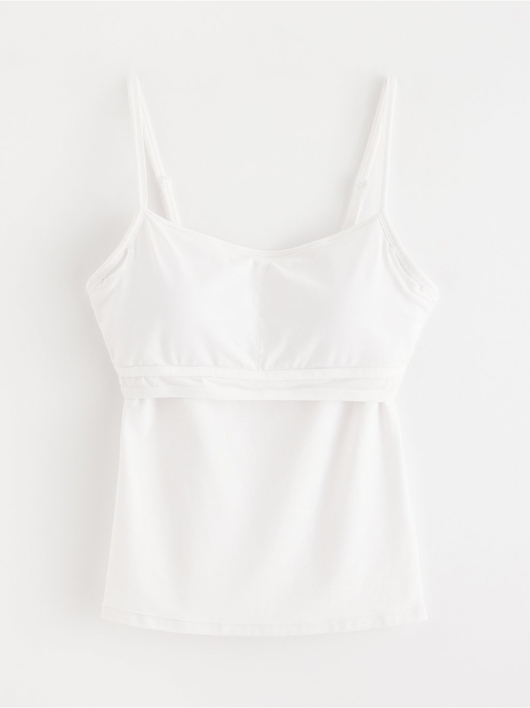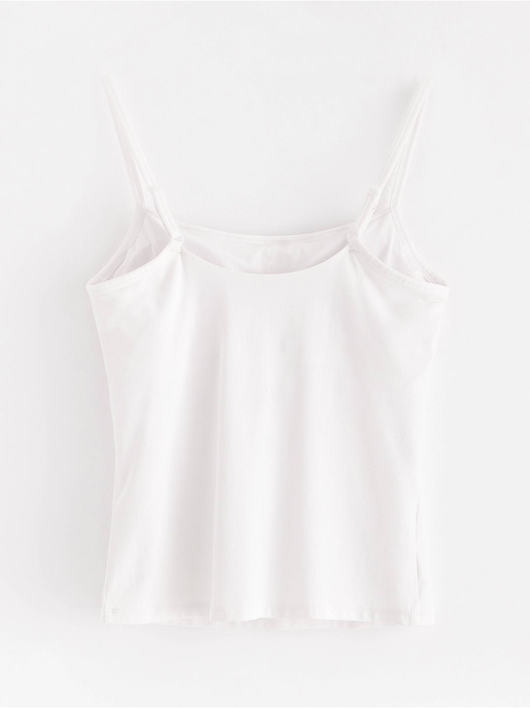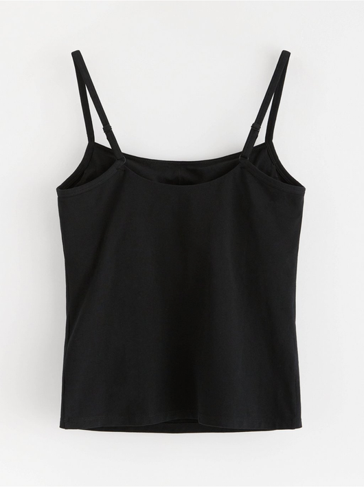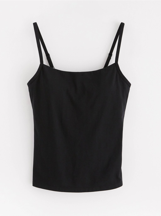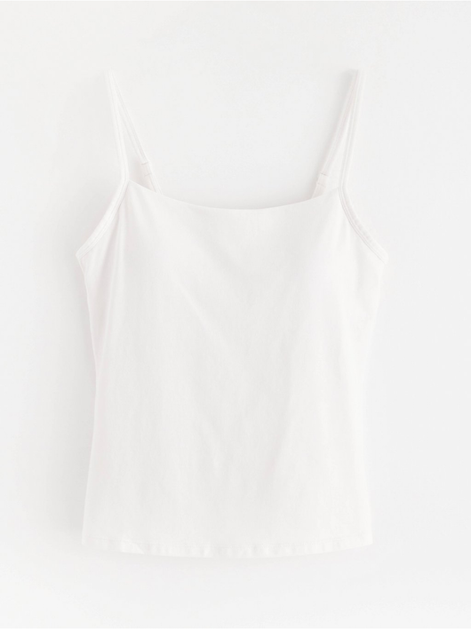 Cotton camisole with a square neckline and built-in bra.