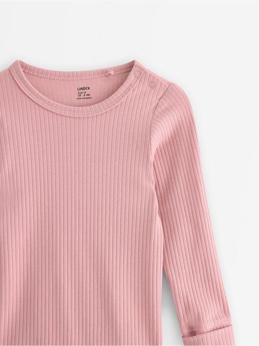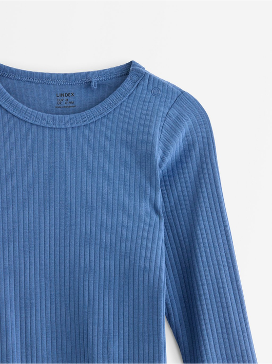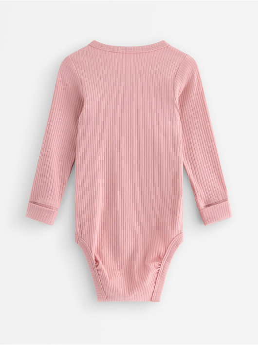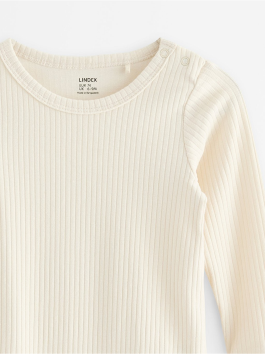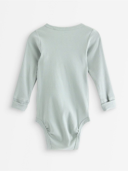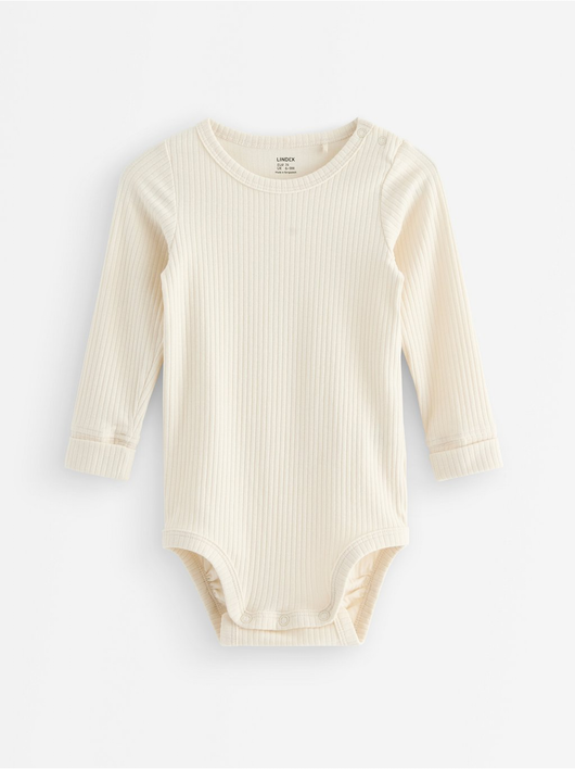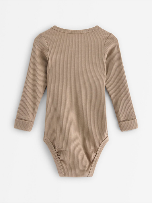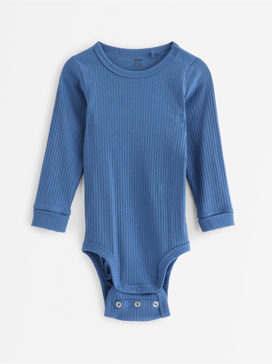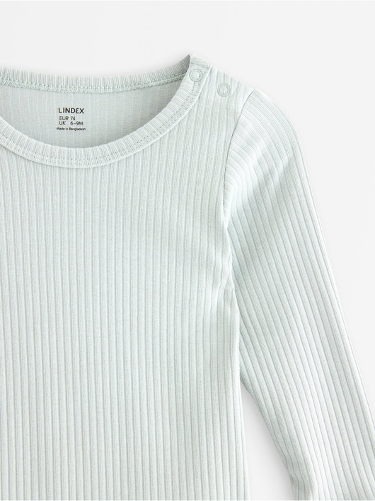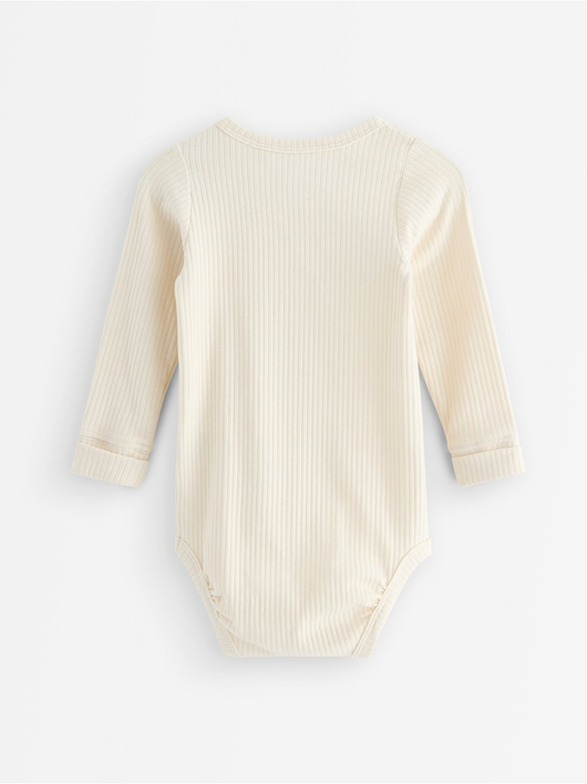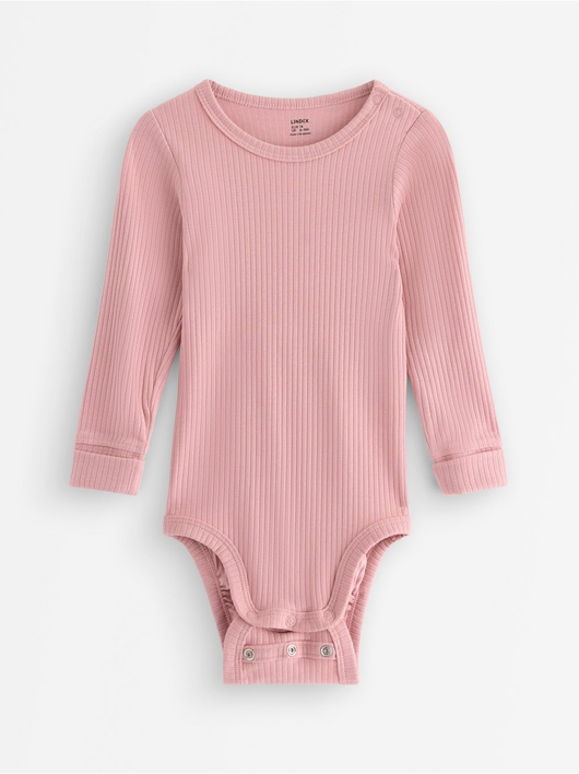 Long-sleeved baby bodysuit in soft, ribbed cotton jersey. With our smart Extended size solution the baby can grow a size and still keep the same garment.