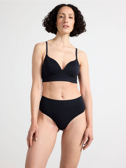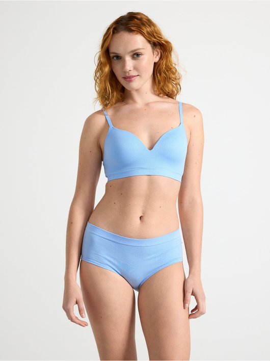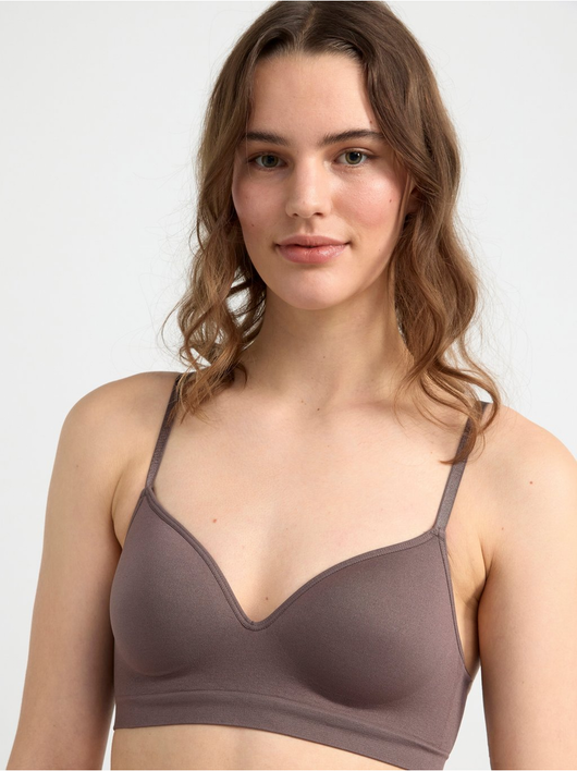 A comfy seamless bra with soft cups, thin padding and no underwire.