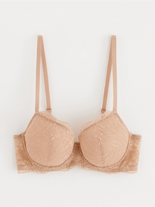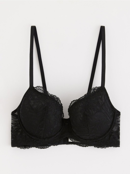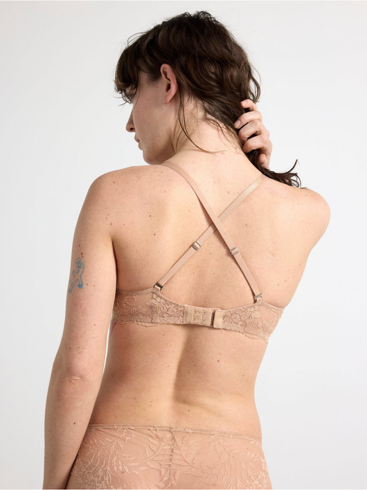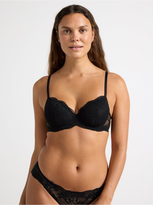 Padded underwire lace bra with in spacer-material, a woven 3D material with lighter padding and two-way stretch.
