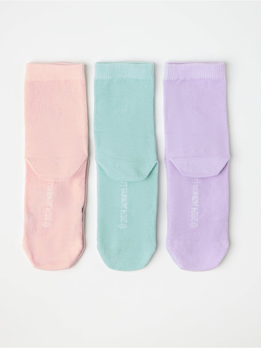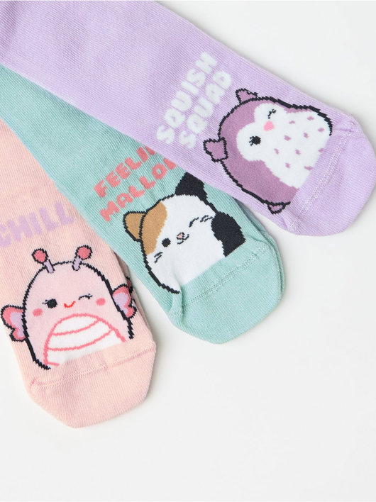 3-pack soft socks in cotton with different Squishmallows motifs.