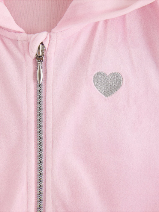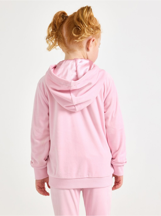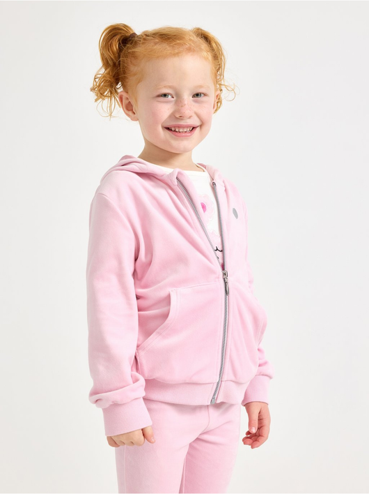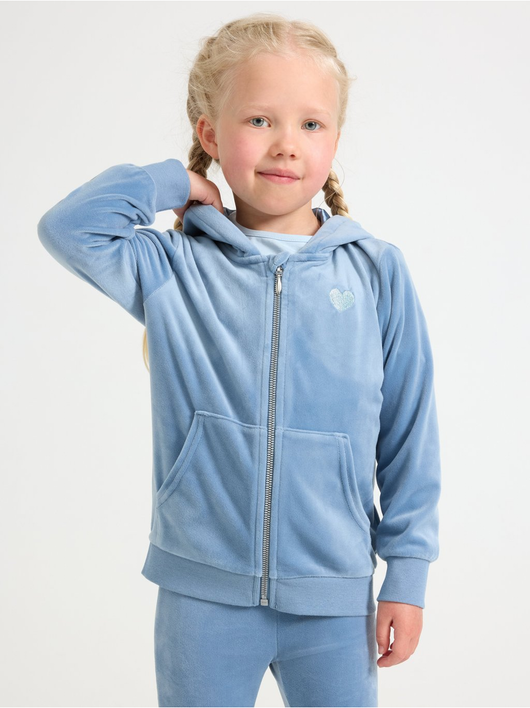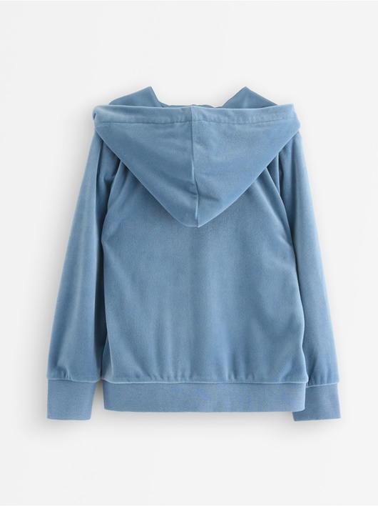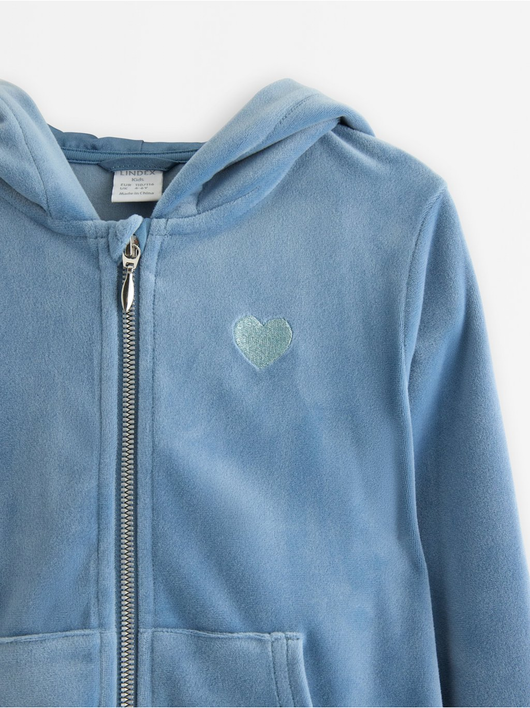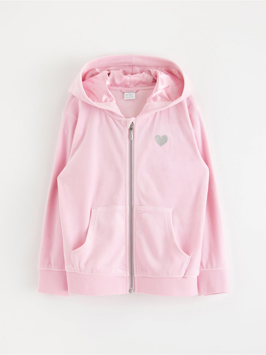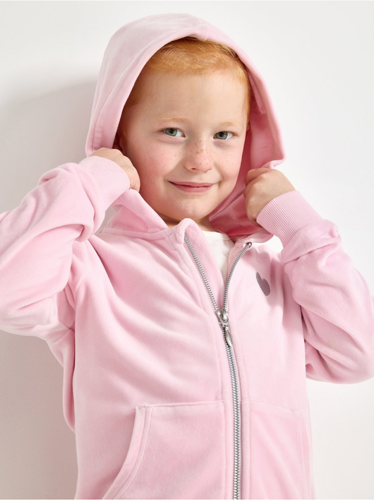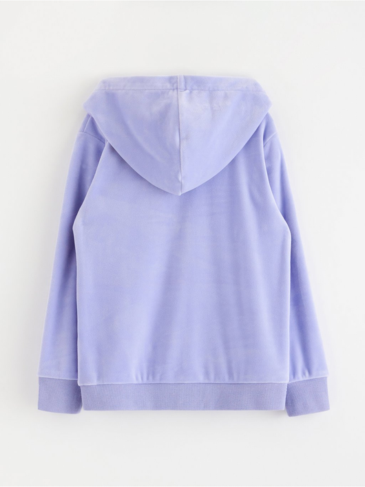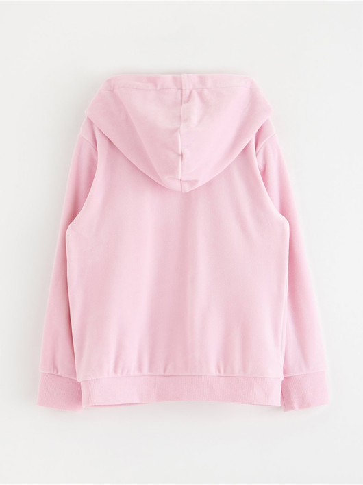 Soft velour hoodie with relaxed fit, zip closure and pockets at the front.