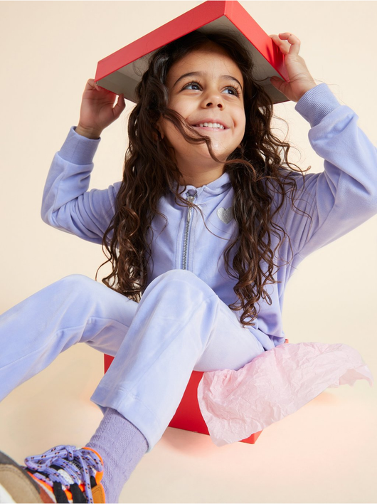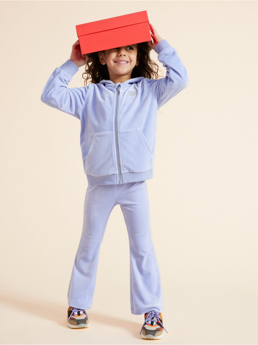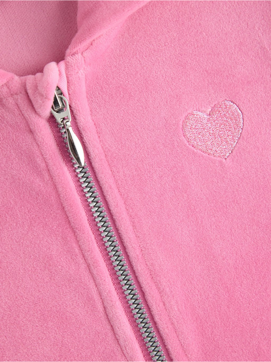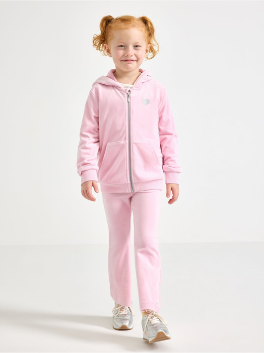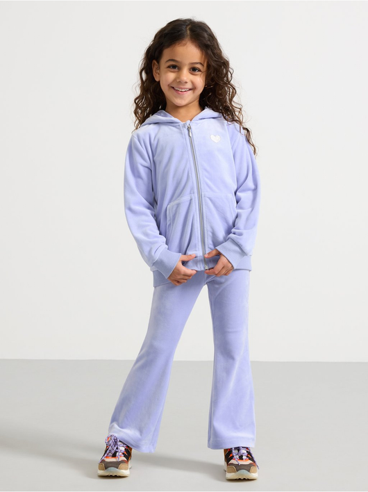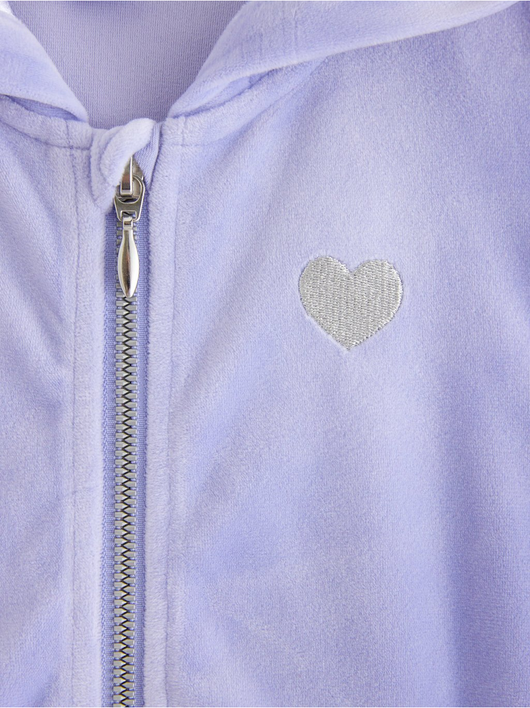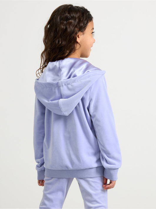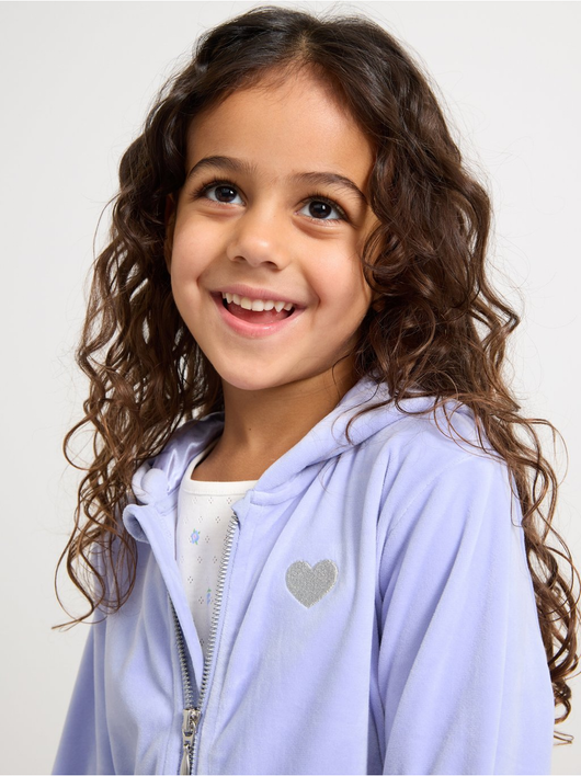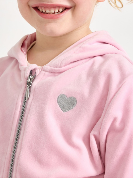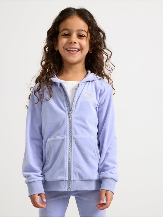 Soft velour hoodie with relaxed fit, zip closure and pockets at the front.