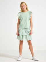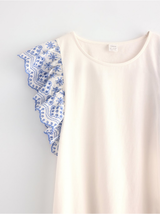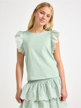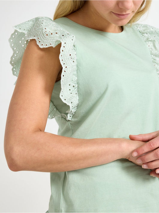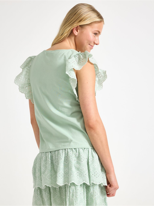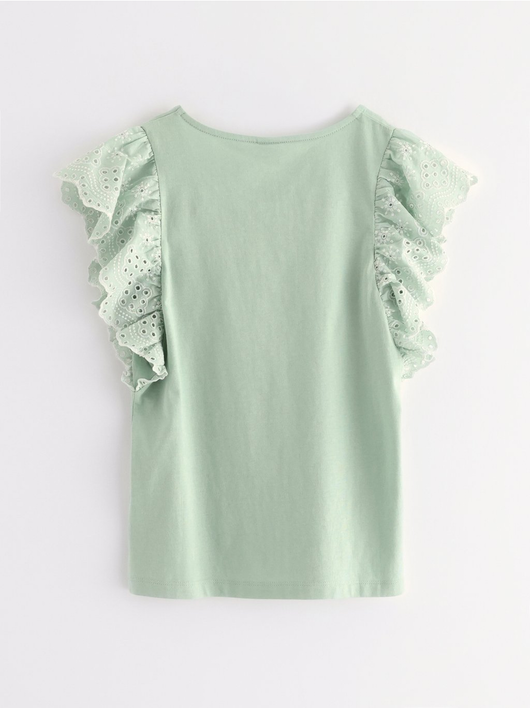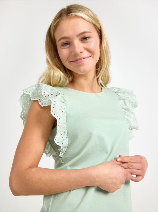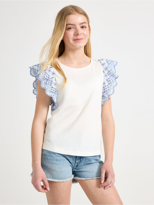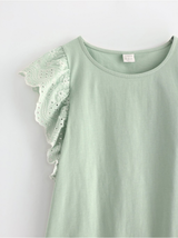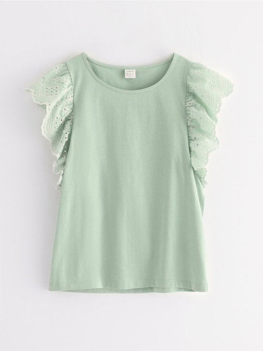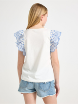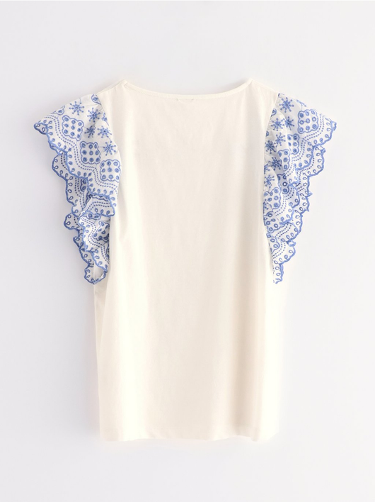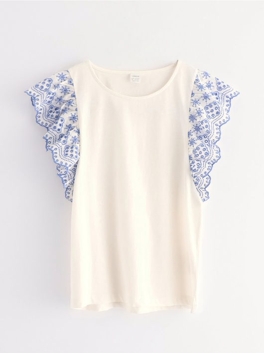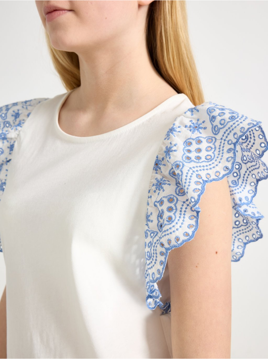 Top in soft cotton jersey with short, embroidered sleeves and straight fit.