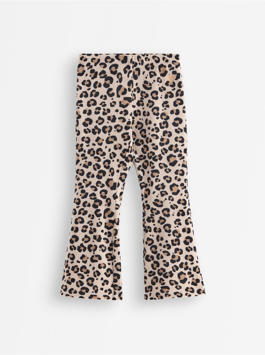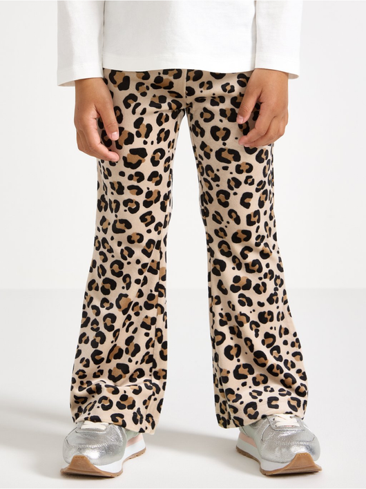 Soft velour leggings with an adjustable, elastic waist and flared legs.