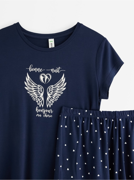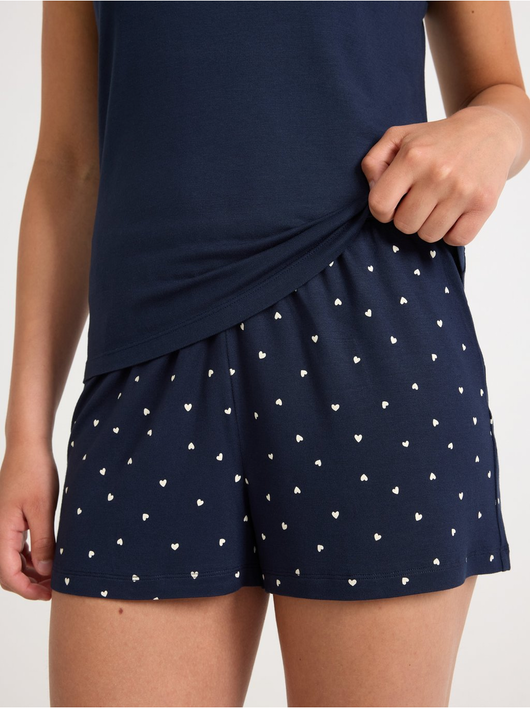 Pyjama set in soft viscose with a short-sleeved top and matching shorts.