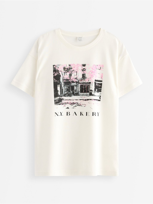T-shirt in soft cotton jersey with a straight fit, short sleeves and a motif at the front.