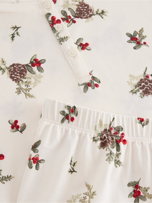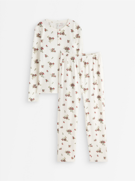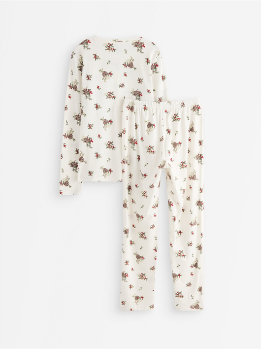 Matching pyjama set in cotton with long sleeve top and trousers.