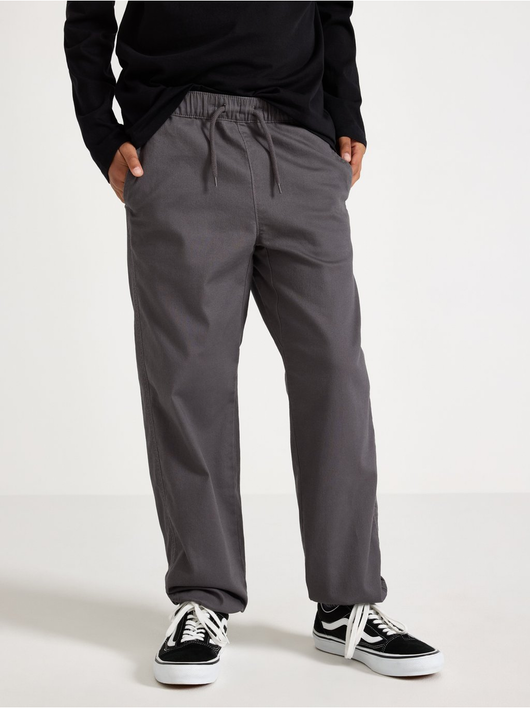 Comfy cargo trousers in cotton with wide, straight legs and an elastic, adjustable waist.