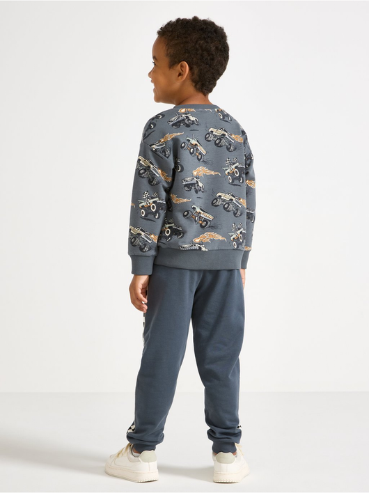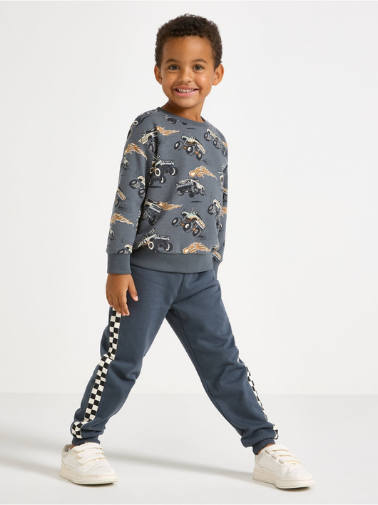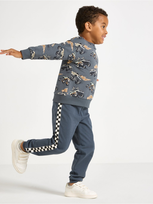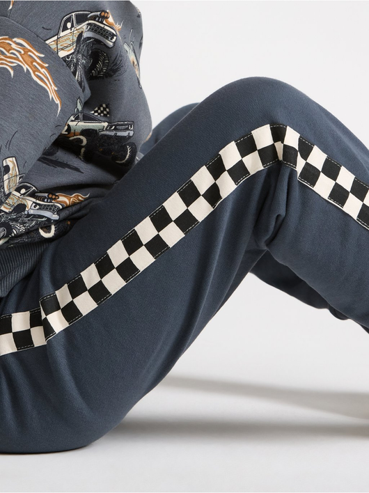 Joggers in cotton jersey with soft brushed inside and prints along the sides.
