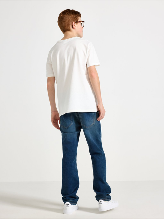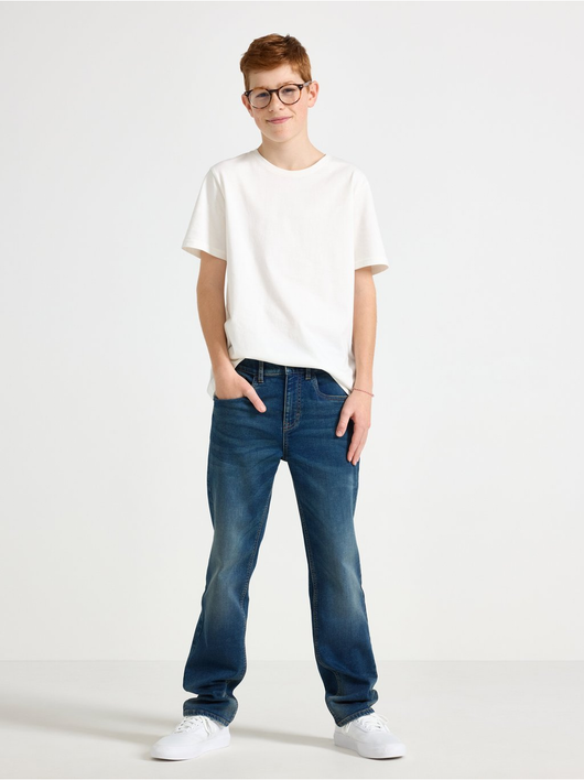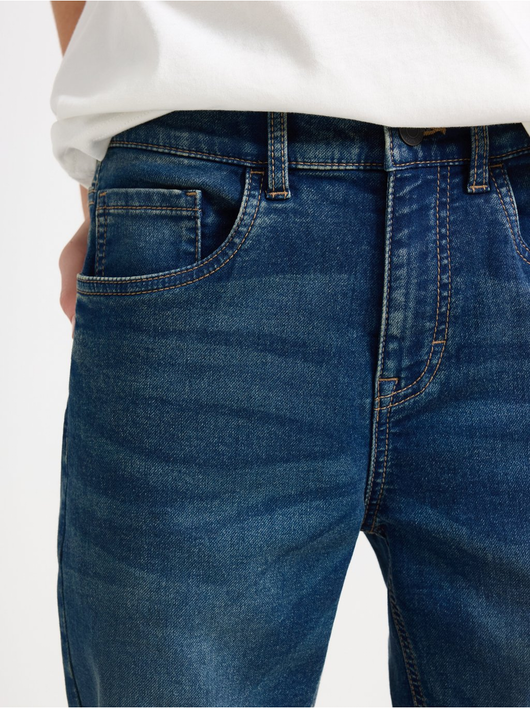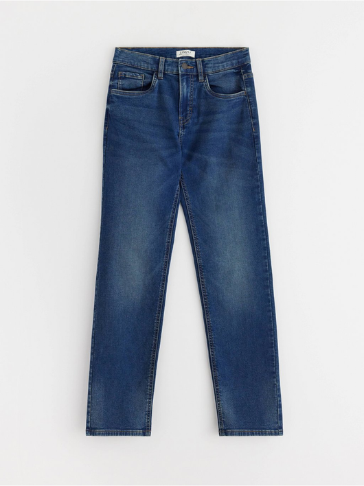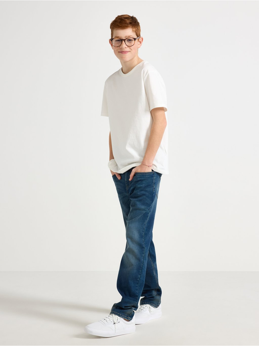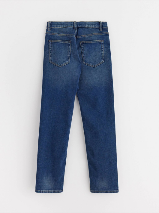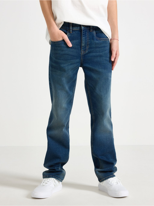 Jeans in cotton jersey with superstretch, straight legs and regular waist.