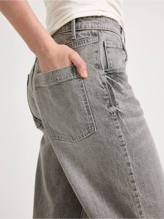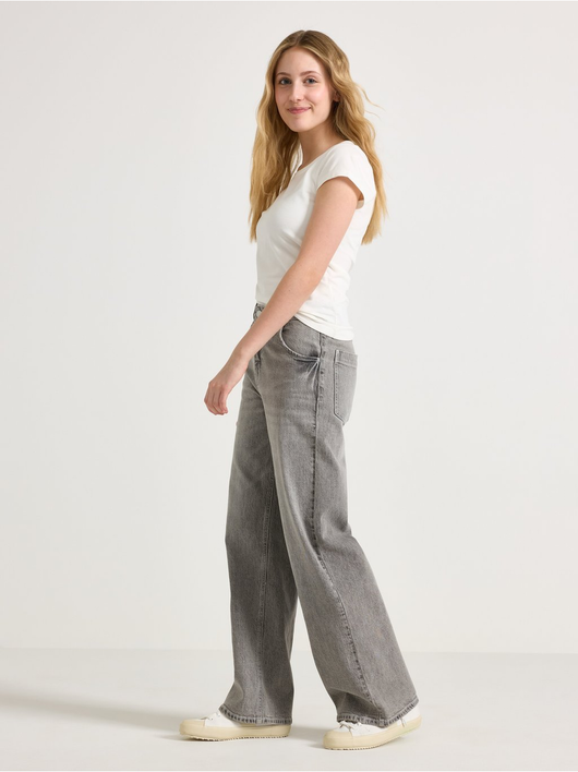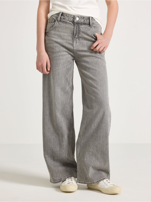 Jeans in cotton denim with a slight stretch, a regular waist and wide legs for a comfortable fit.