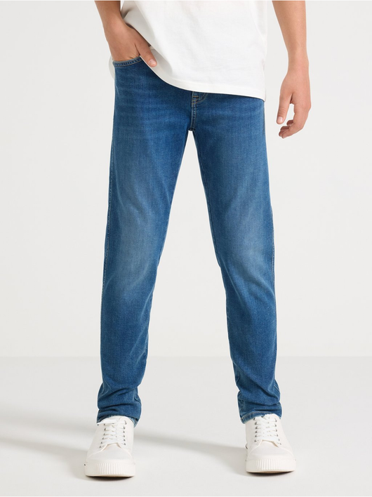 Jeans in cotton denim with stretch, regular waist and narrow legs.