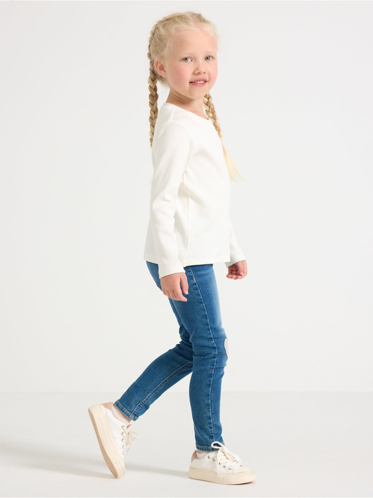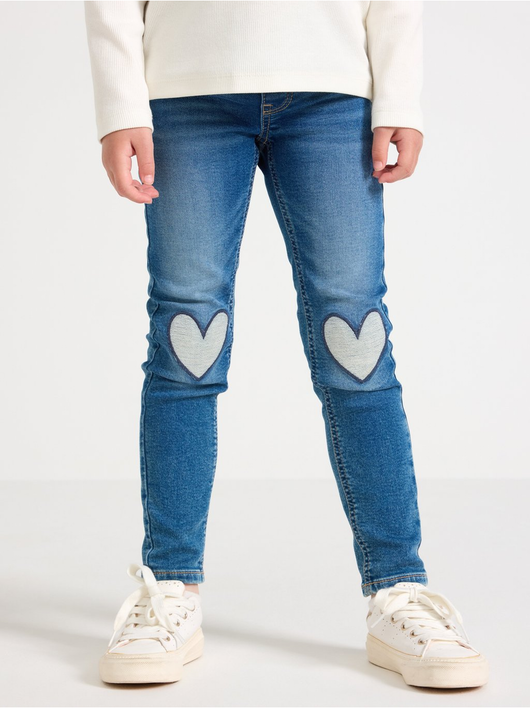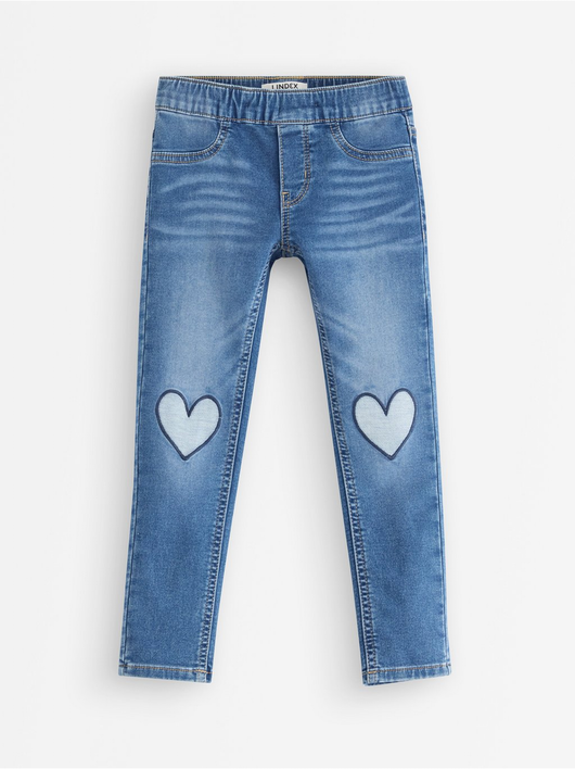 Soft trousers in denim jersey with sewn on patches on the knees. The pull-up design makes them super easy to put on and take off.