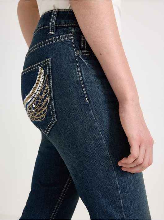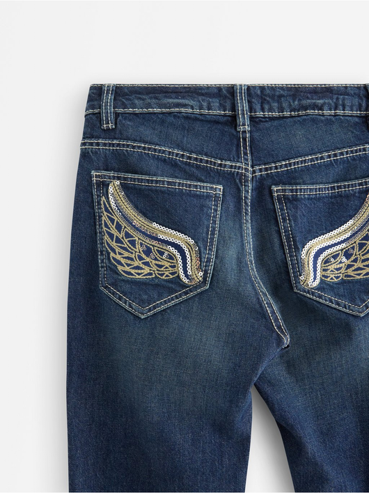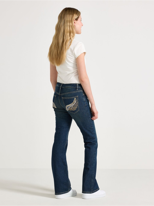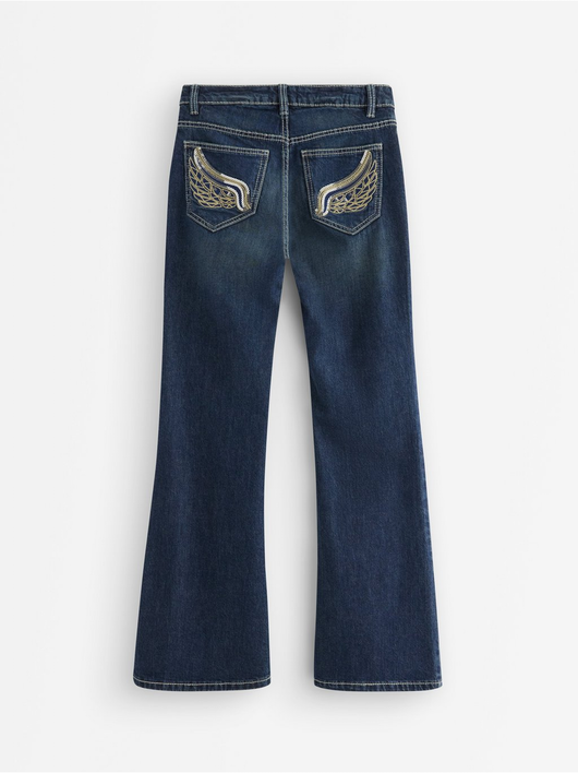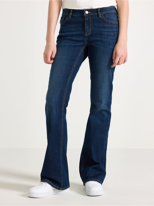 Jeans in cotton denim with light stretch, flared legs and regular waist.