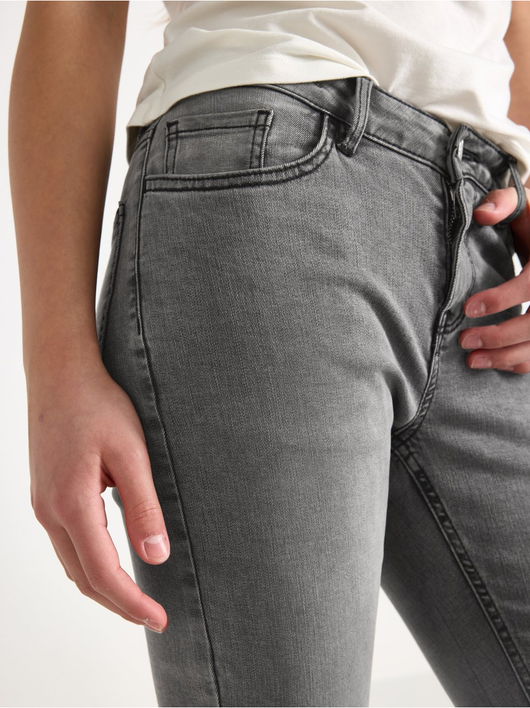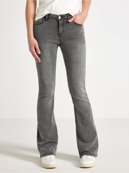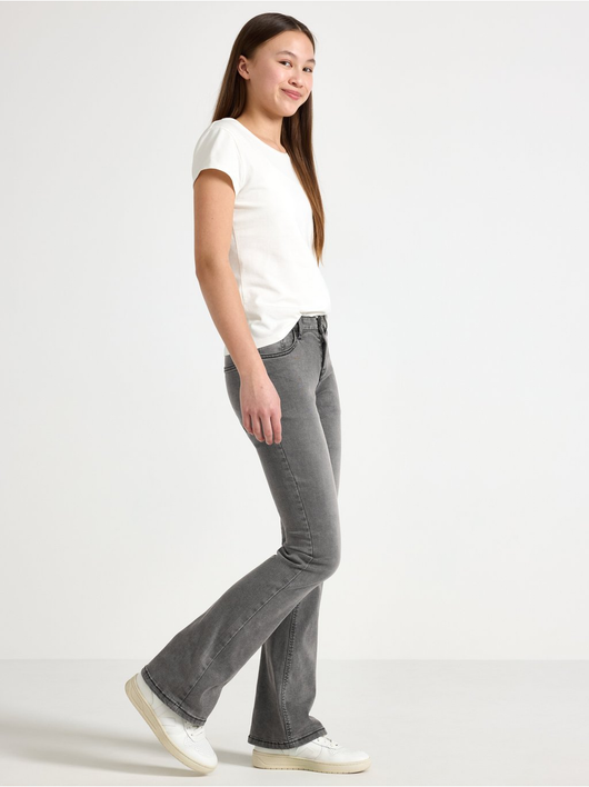 Comfy, woven jeans in cotton blend with an adjustable regular waist and a flared leg. Regular waist.