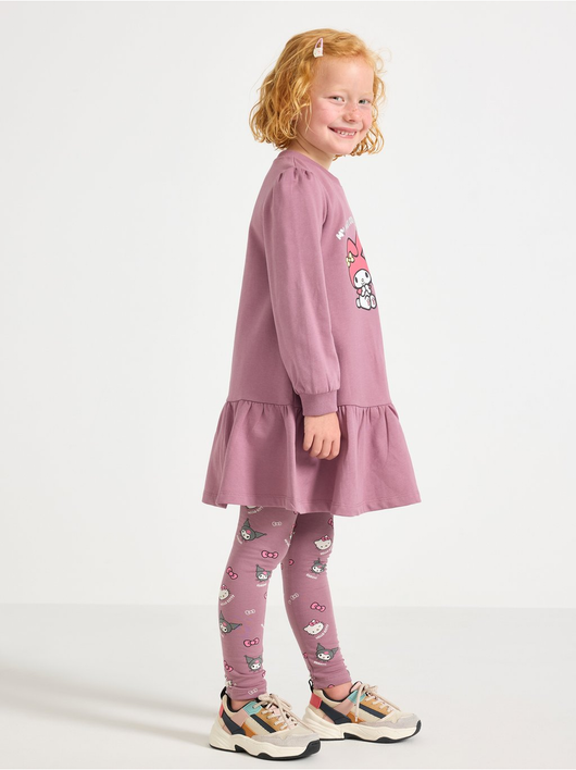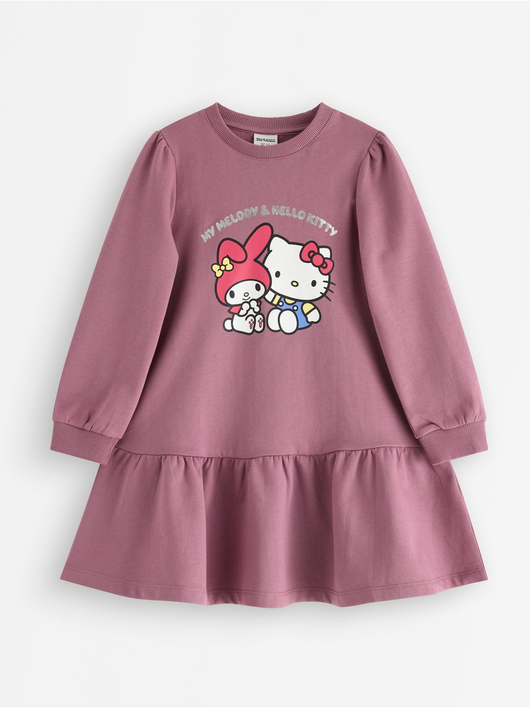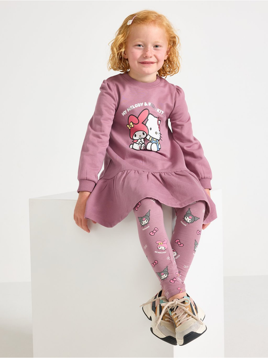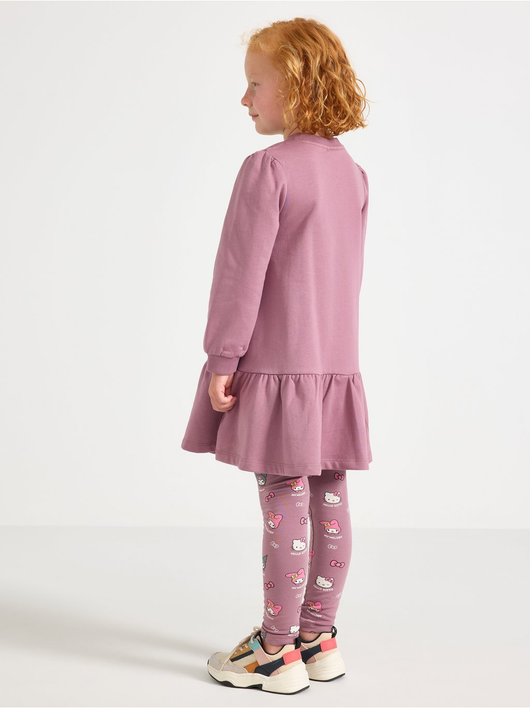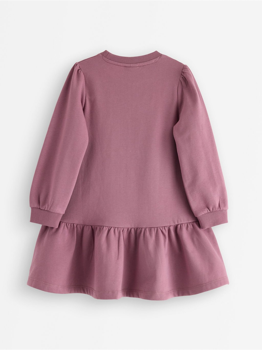 Long-sleeved dress in cotton jersey with brushed inside, print on the front and flared skirt.