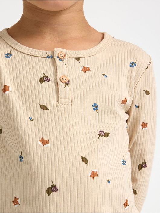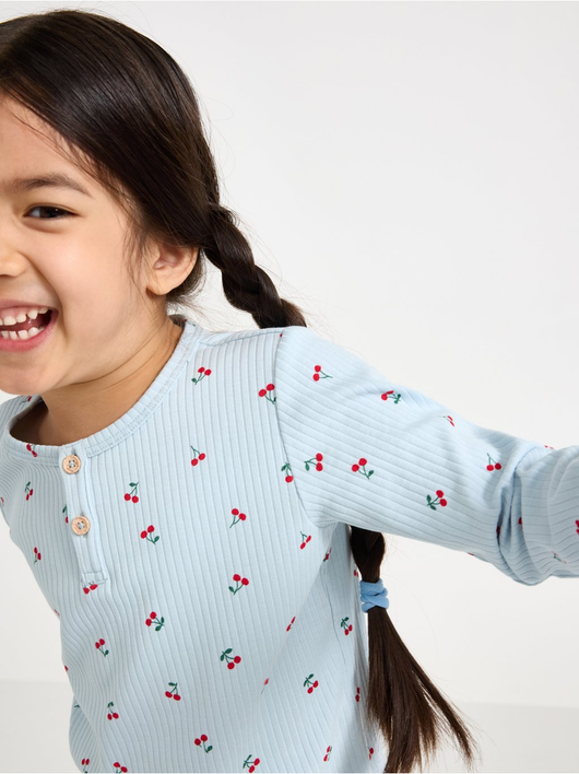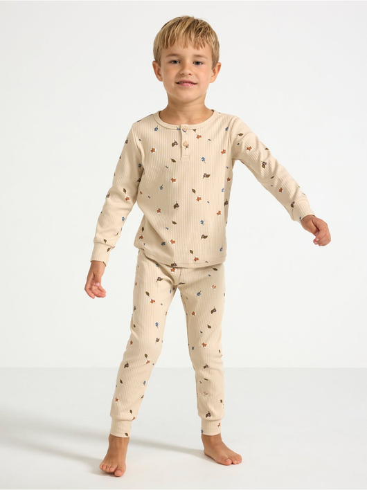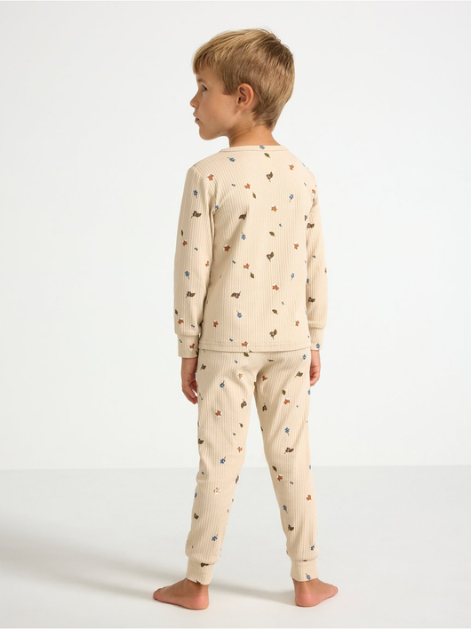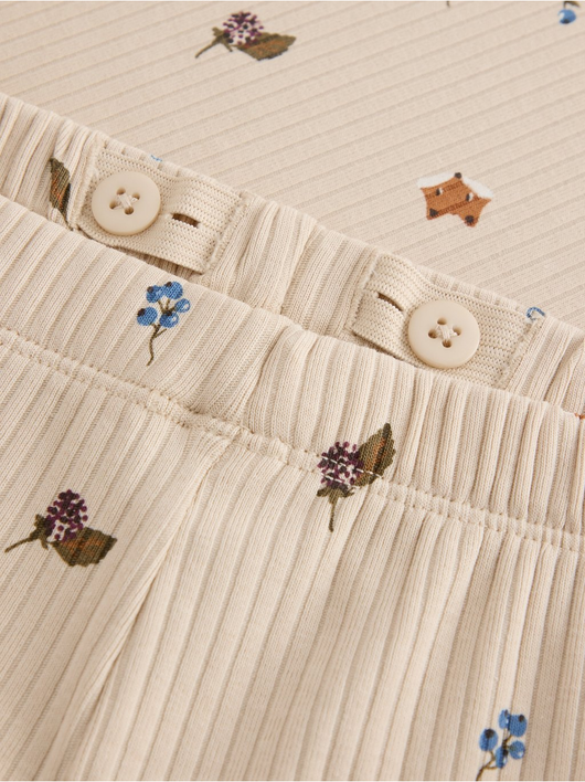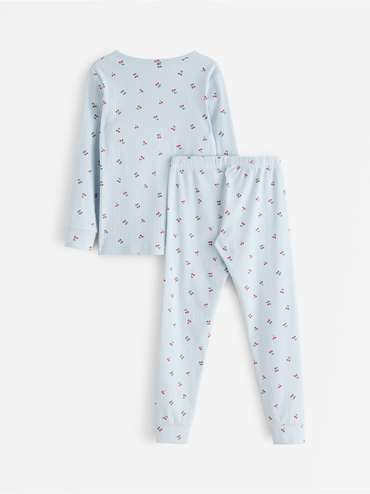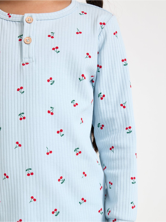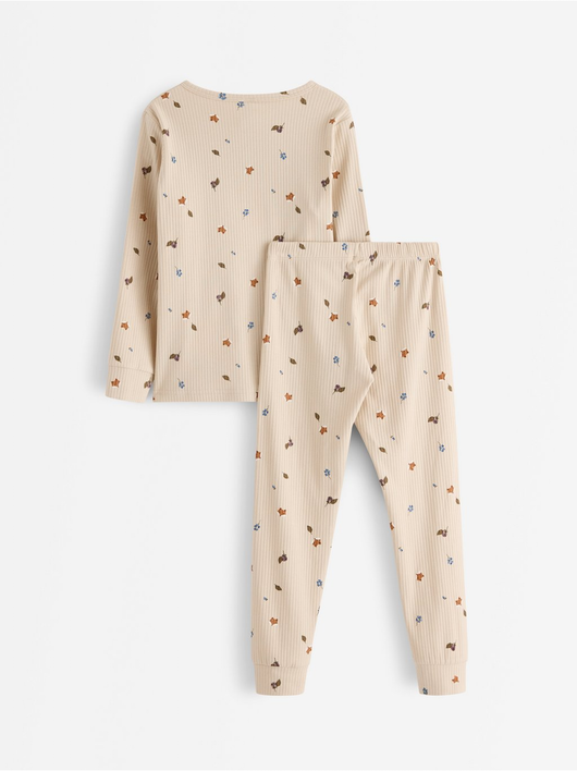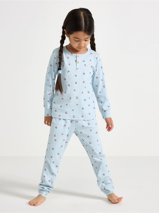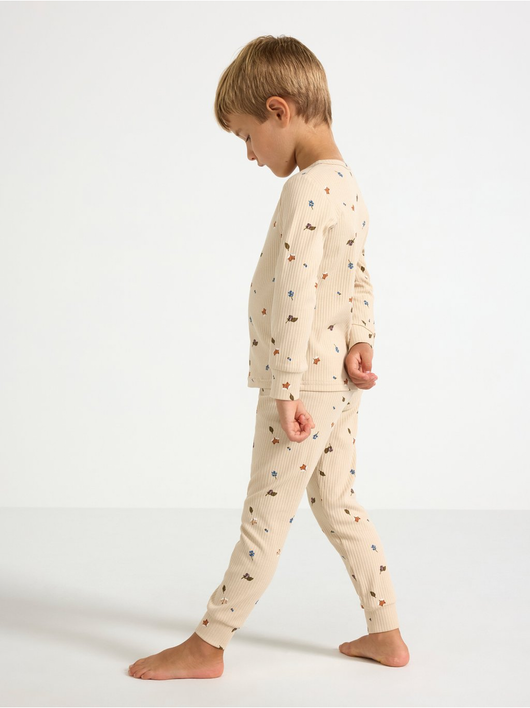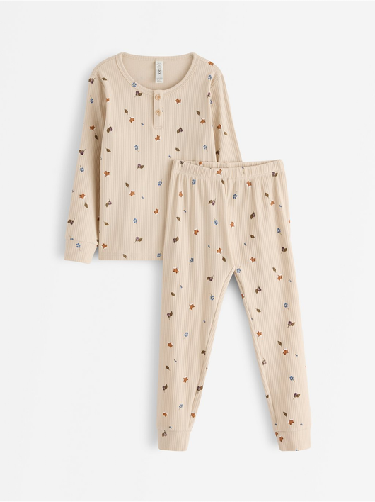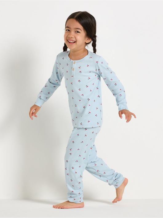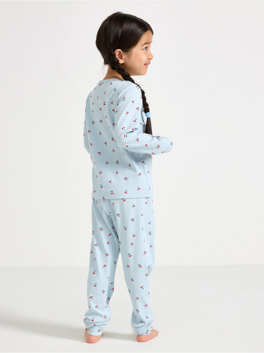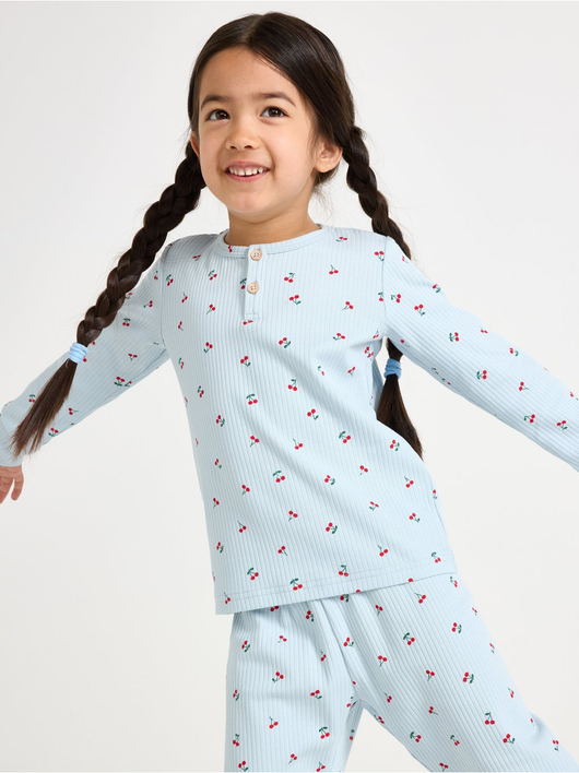Pyjama set with long-sleeved top and matching trousers in soft, ribbed cotton.