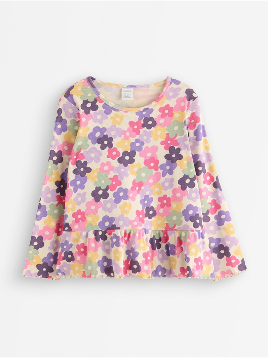 Ribbed top in soft cotton jersey with long sleeves and relaxed fit.