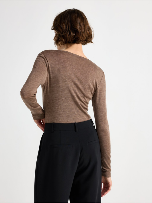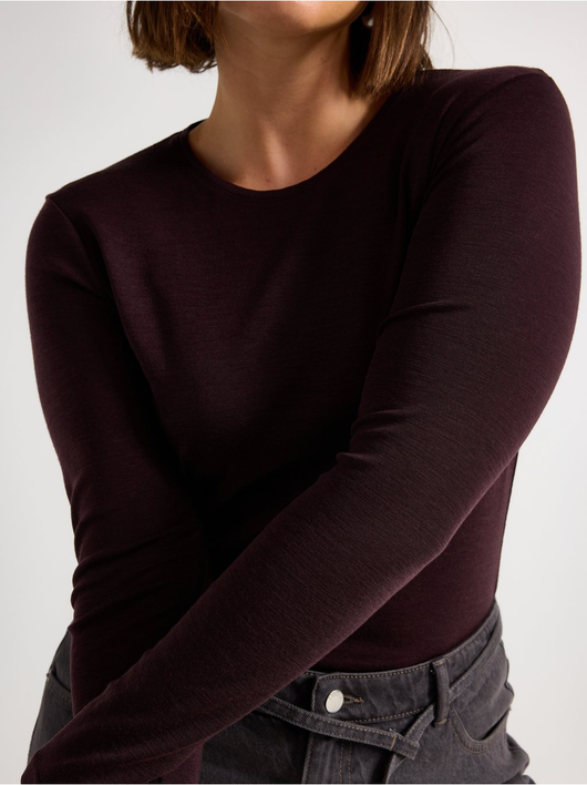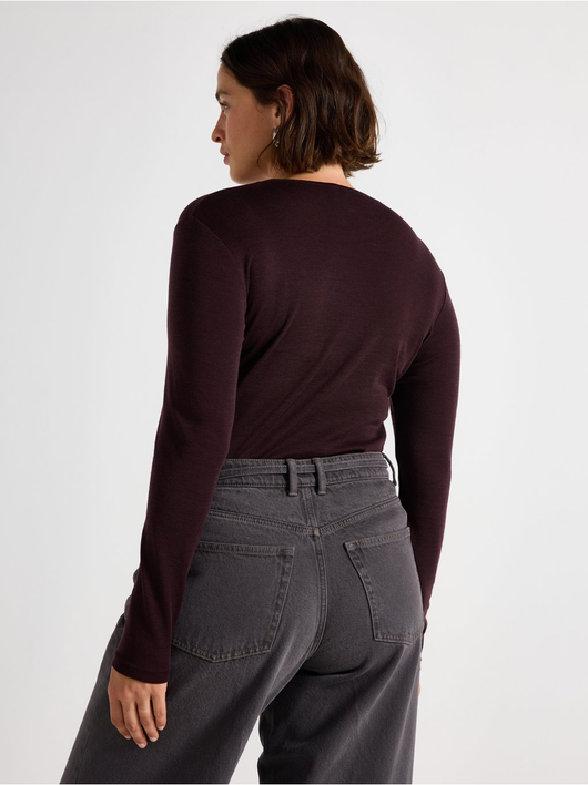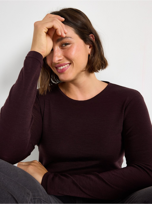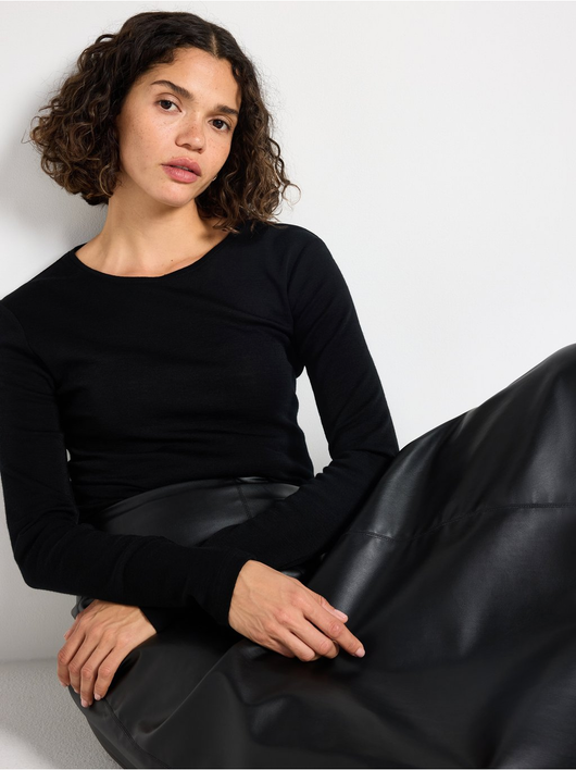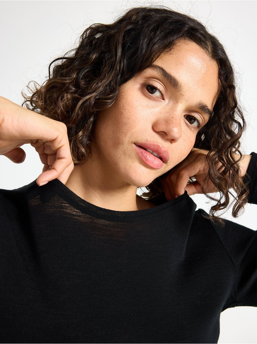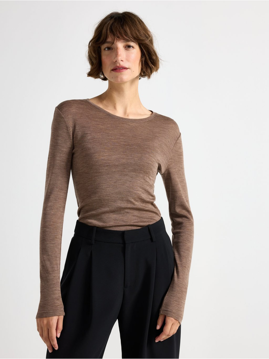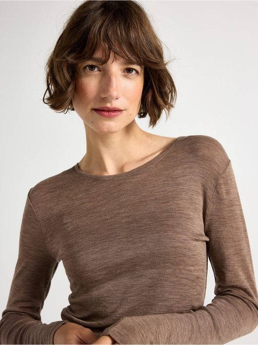 Long sleeve top in merino wool to use as a base layer on chilly days. PREMIUM QUALITY. This is a Premium Quality piece, made from pure merino wool. Merino wool is a soft and lightweight material that keeps you warm and is made to be loved for a long time. Care for your merino wool, and you got yourself a timeless piece to wear again and again.
