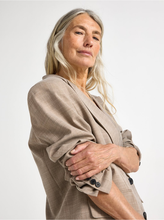 Stylish double-button blazer with a classic collar and a tailored fit.