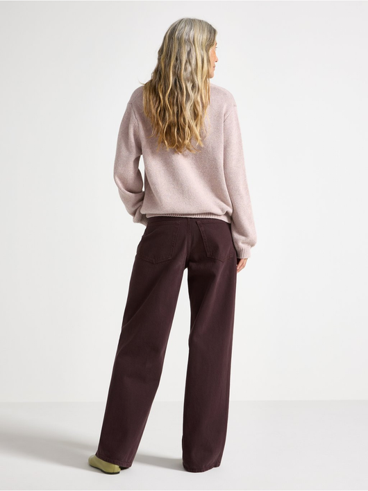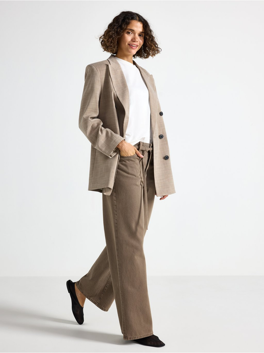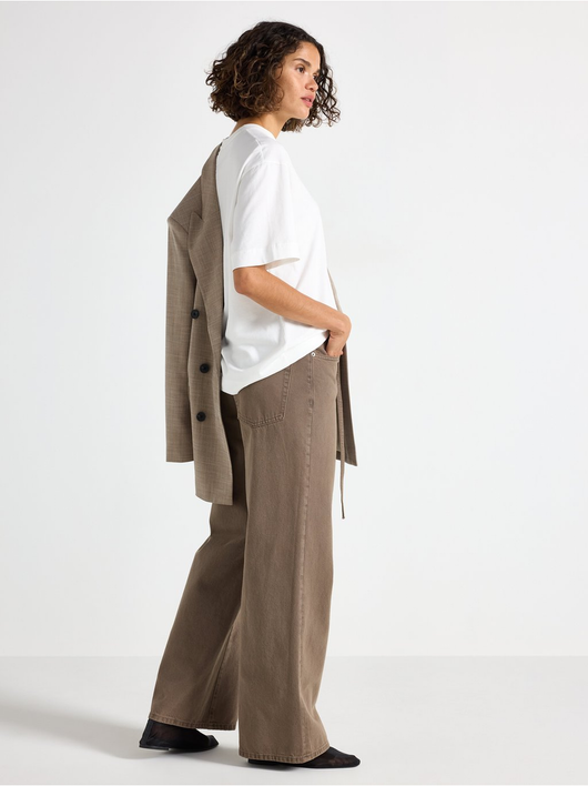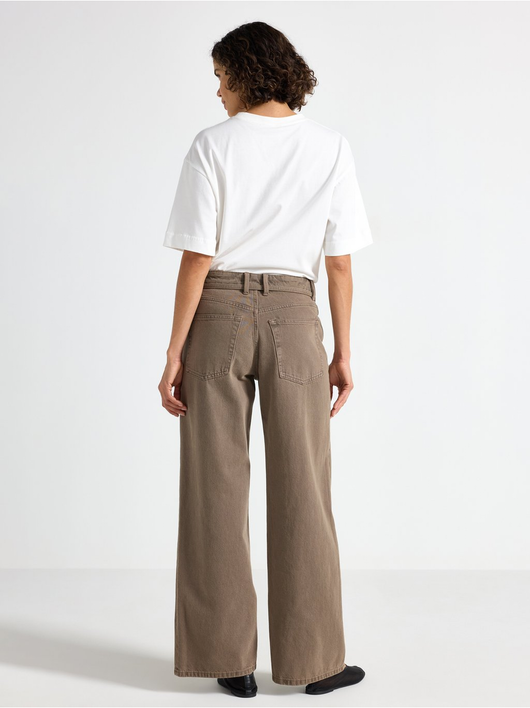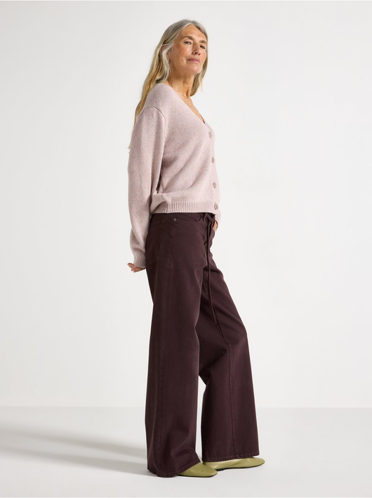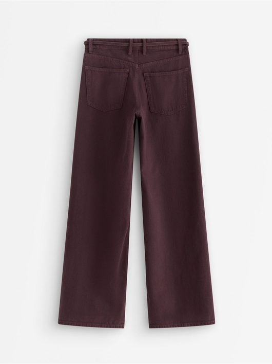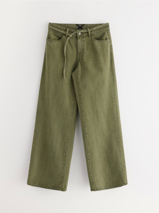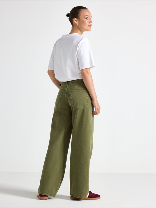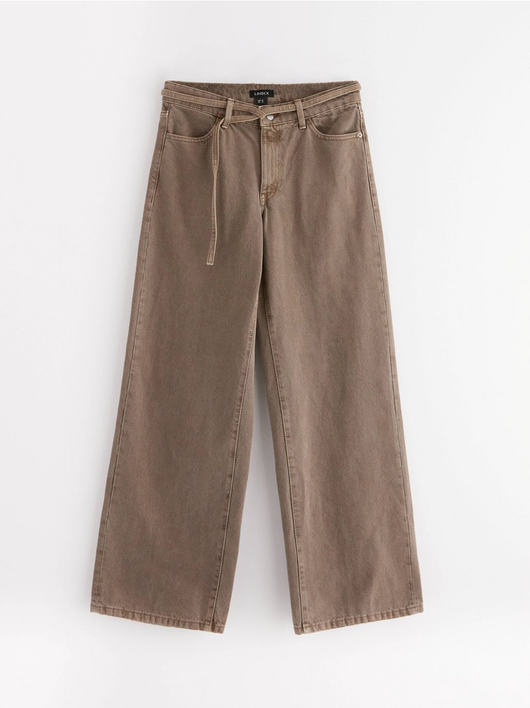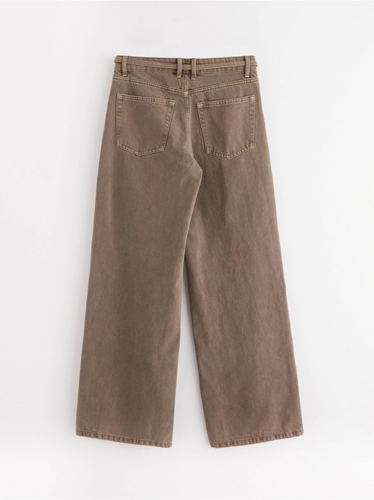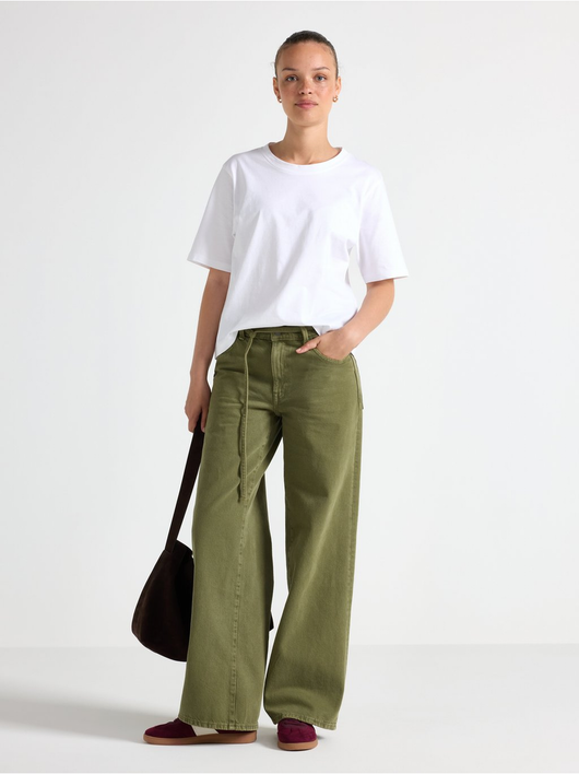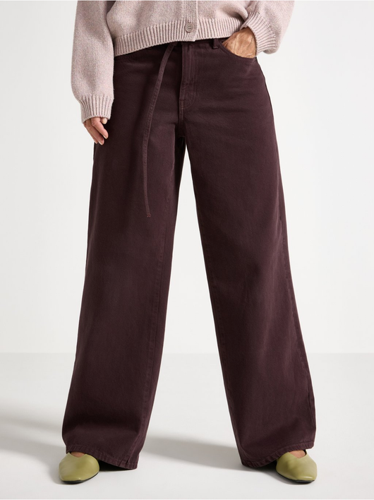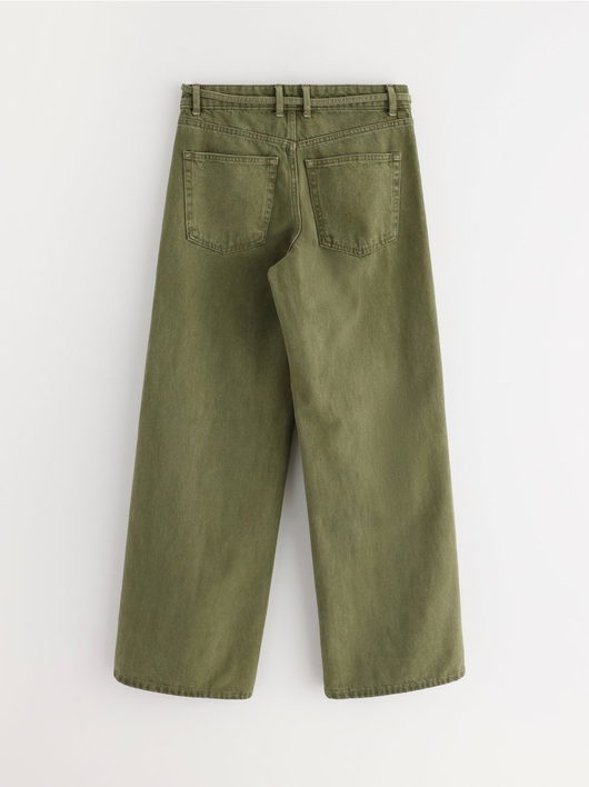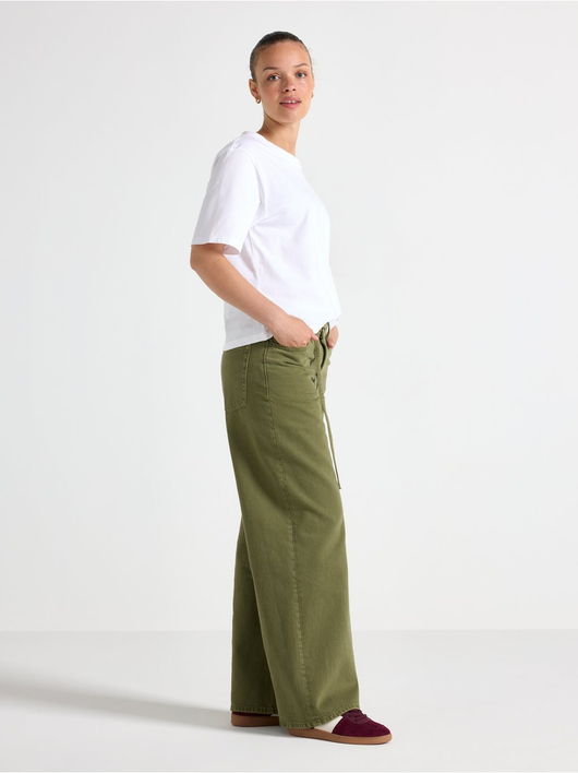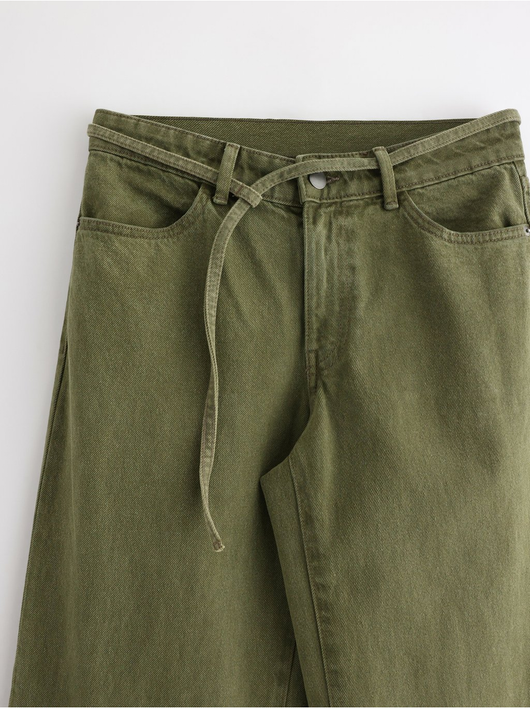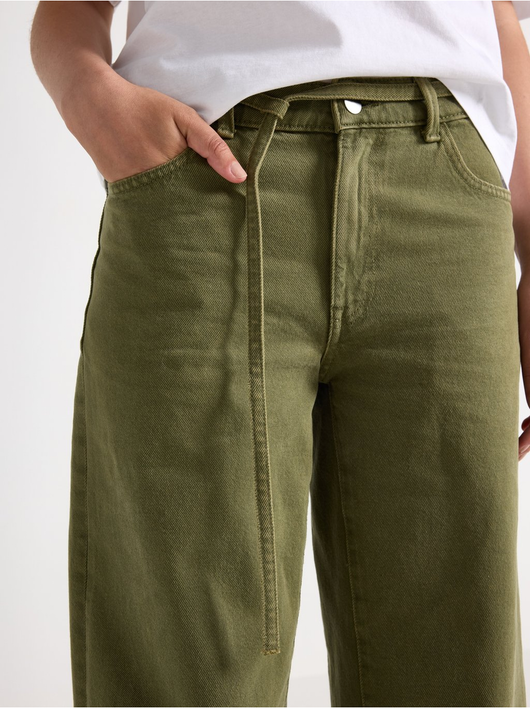 Trousers in twill with wide fit, regular waist and a removable tie band.