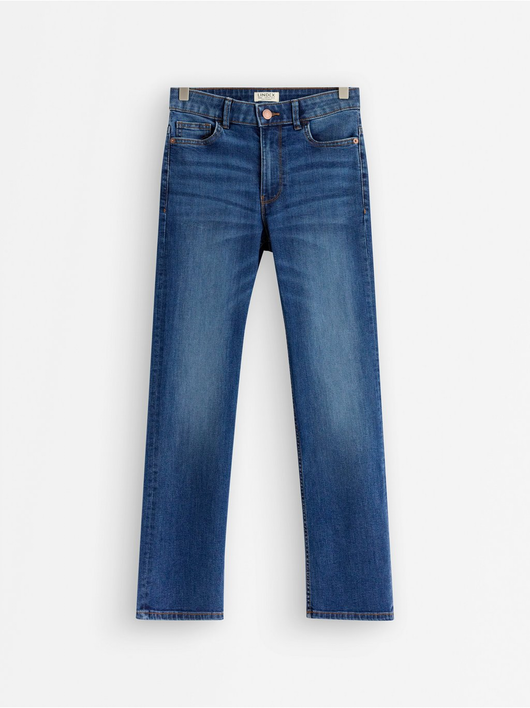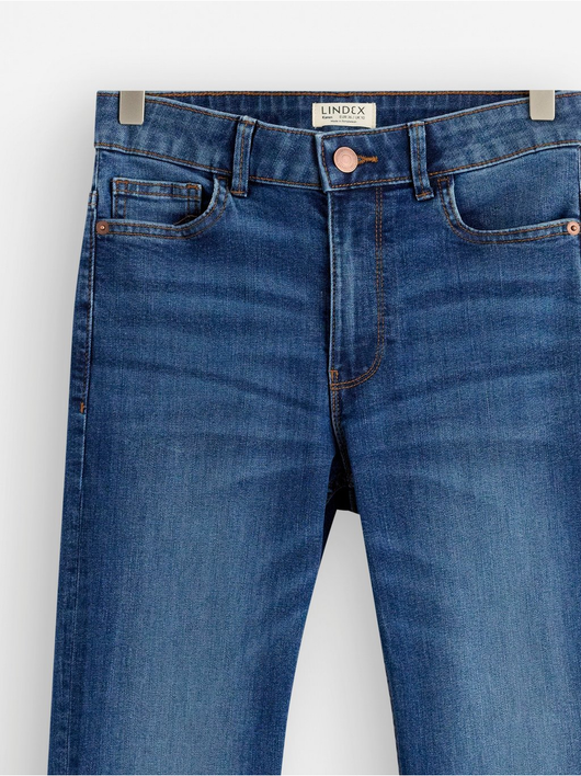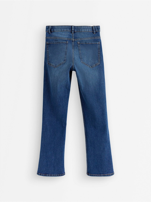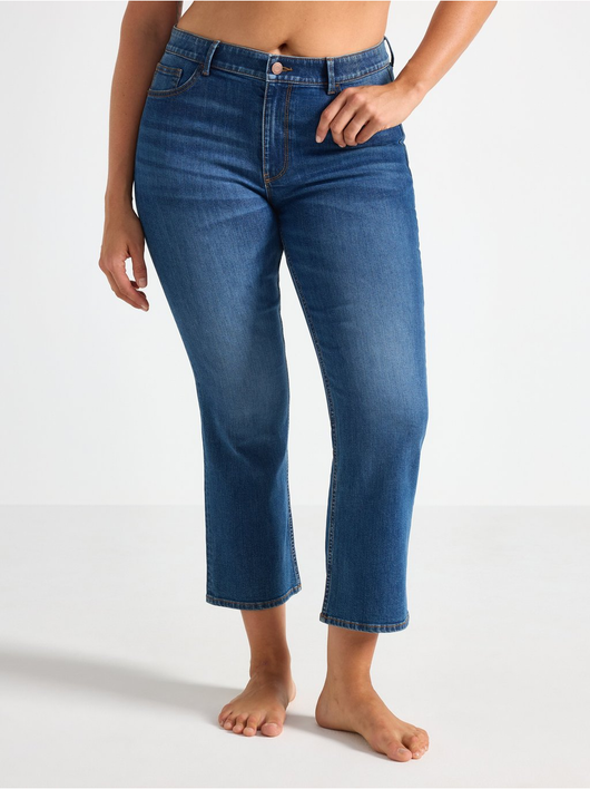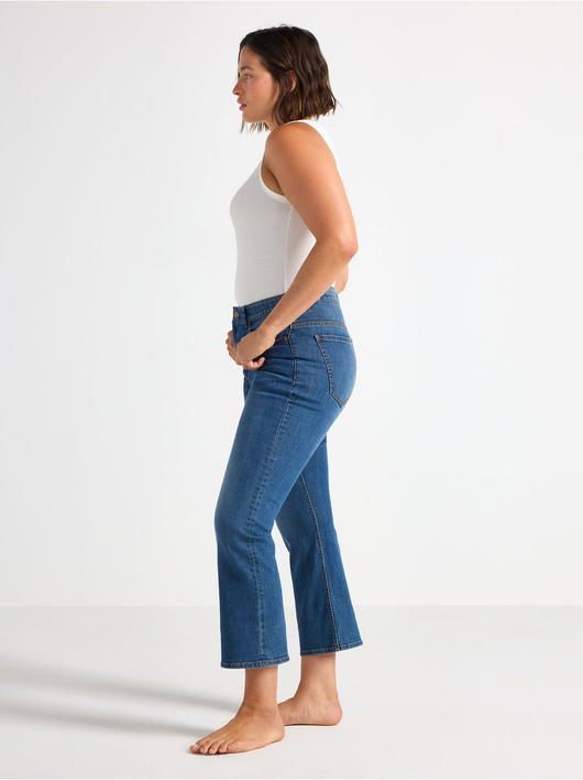 Mid waist jeans in cotton denim with stretch and flared, cropped legs.