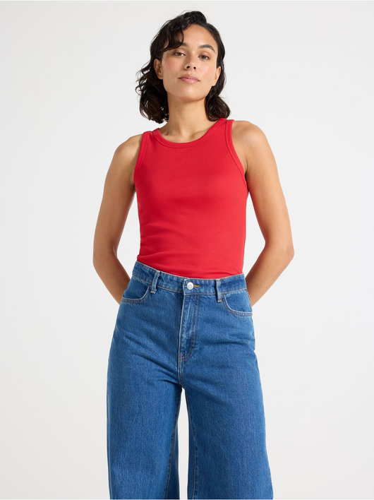Tank top in soft and stretchy cotton with figure fit.
