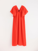 Woven midi dress in soft viscose with a relaxed fit and wide elastic at neck opening.