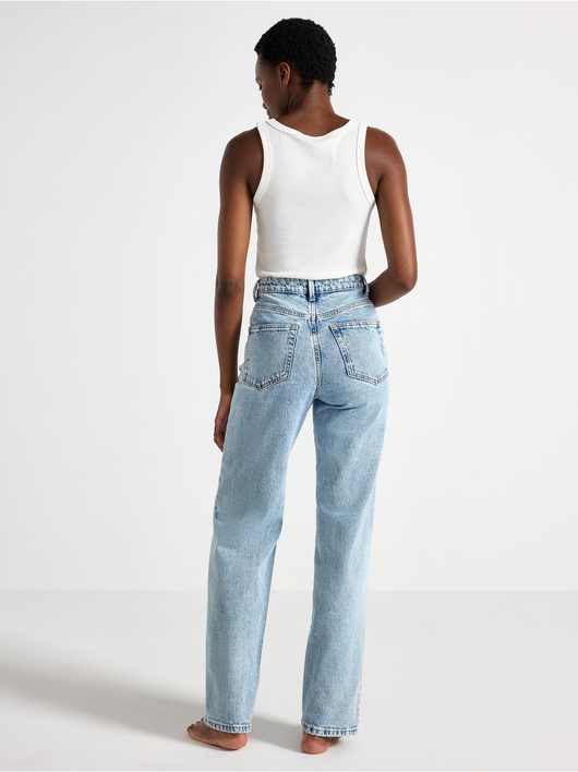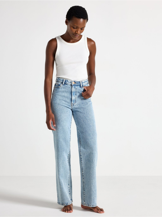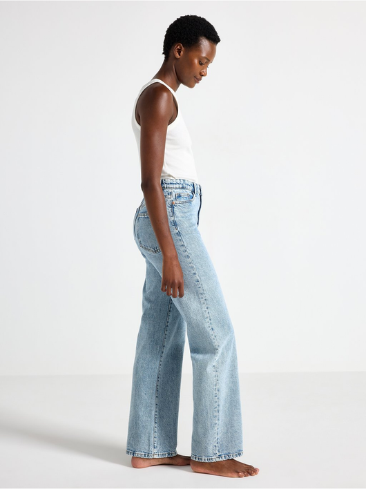 High waist jeans in cotton denim with light stretch and wide legs.