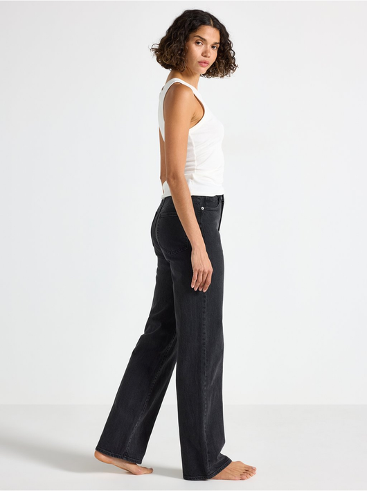 High waist jeans in cotton denim with light stretch and wide legs.