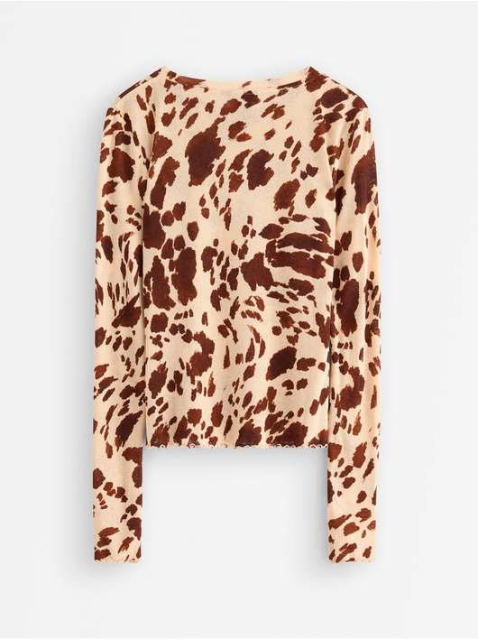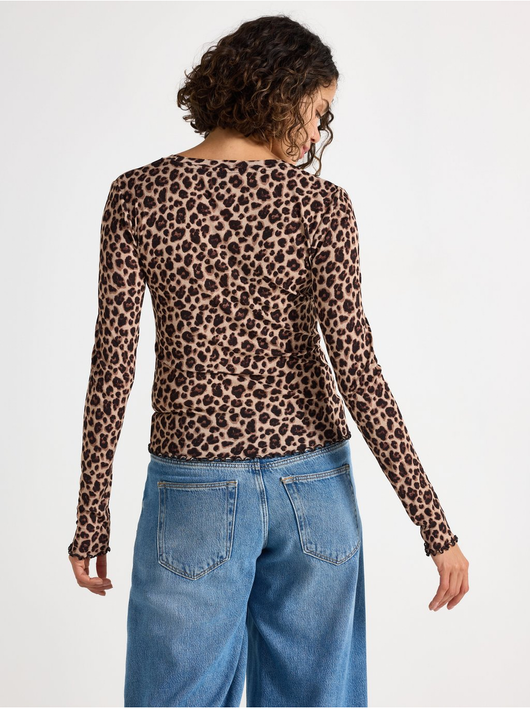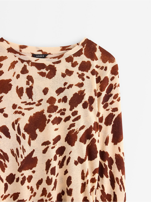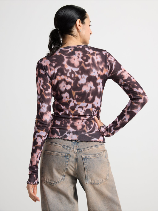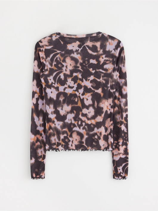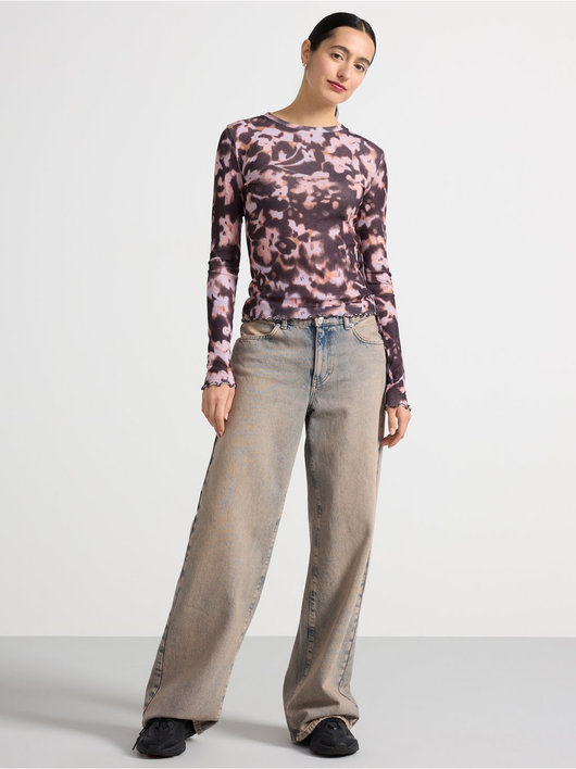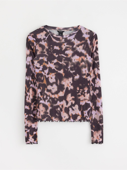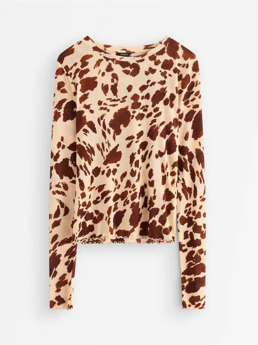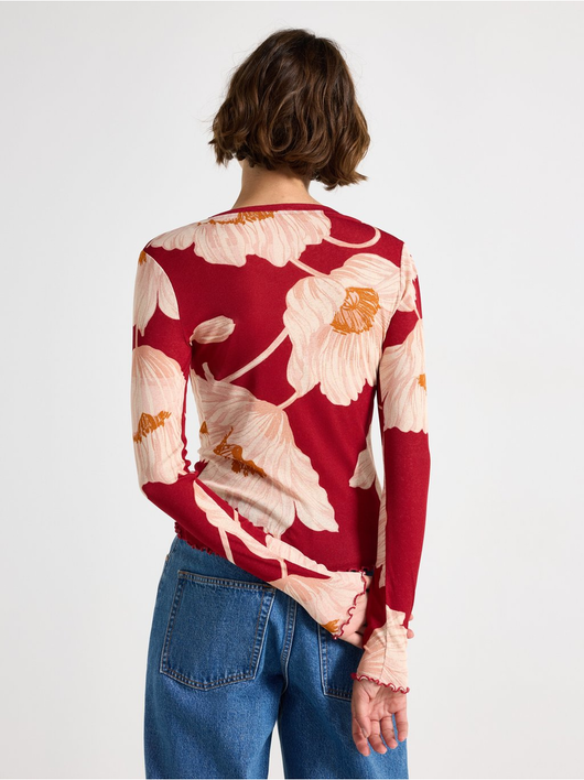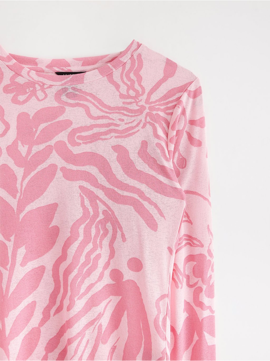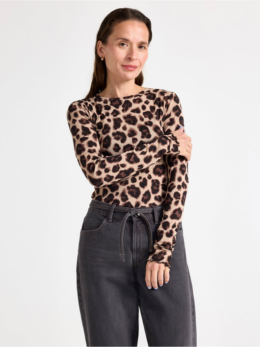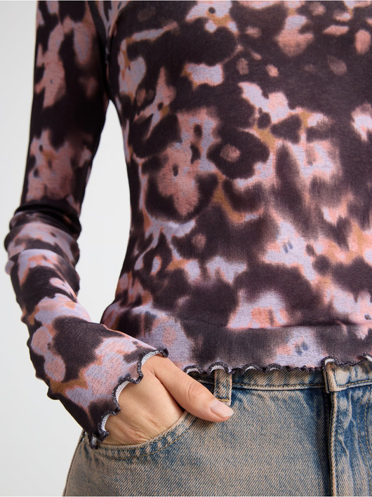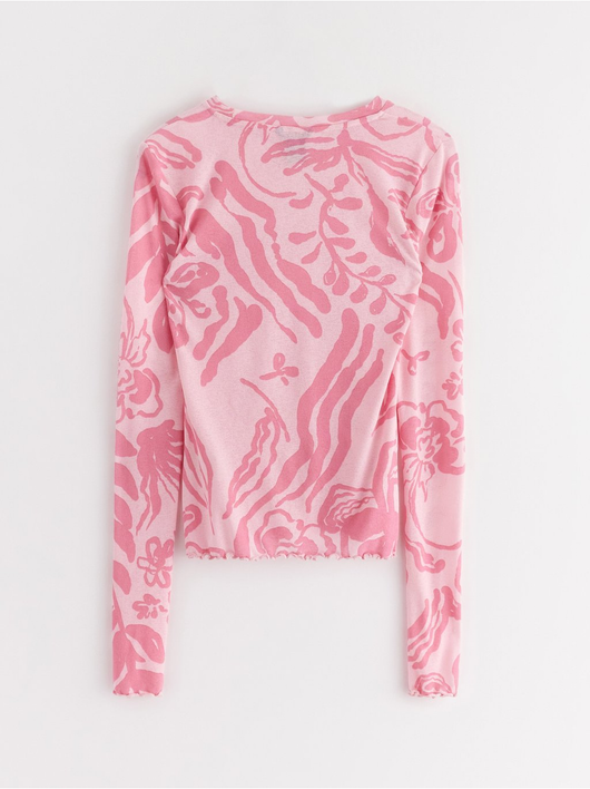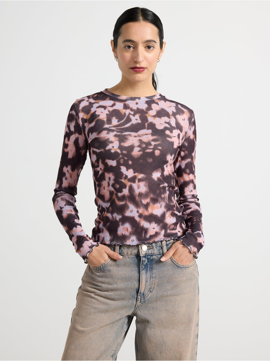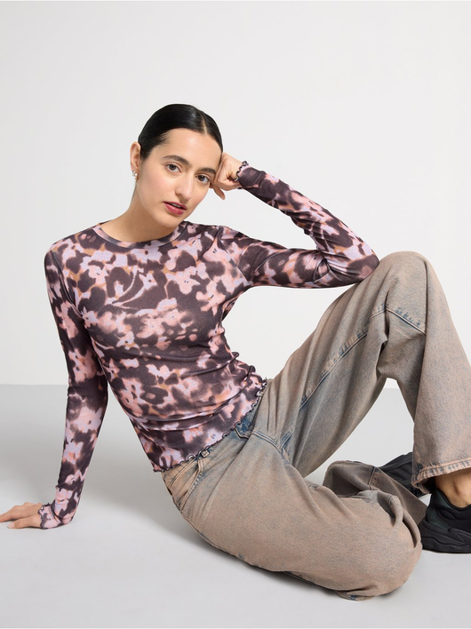 Long-sleeved top in soft, sheer jersey with a round neckline and wavy hem.
