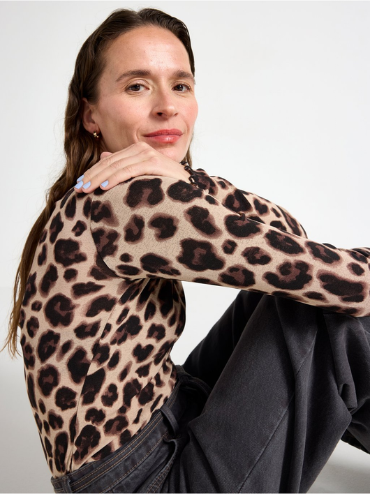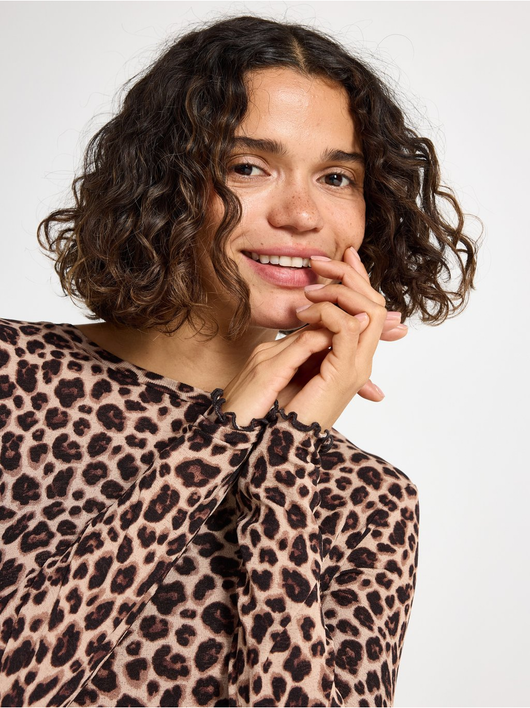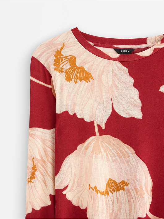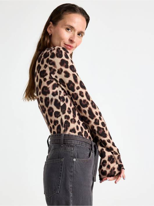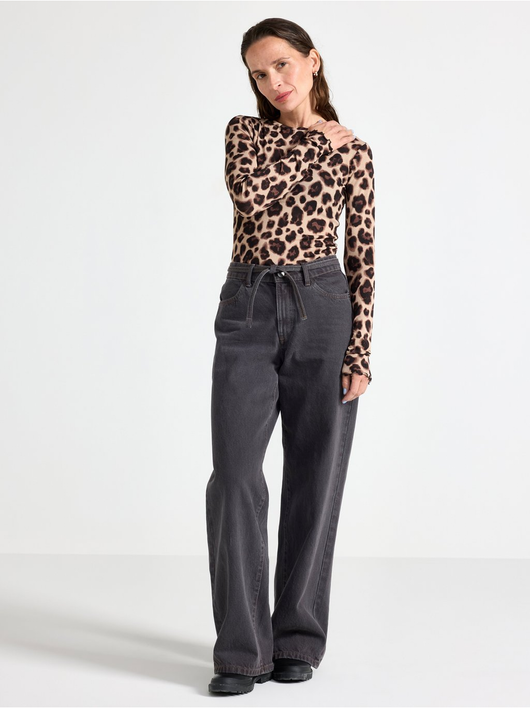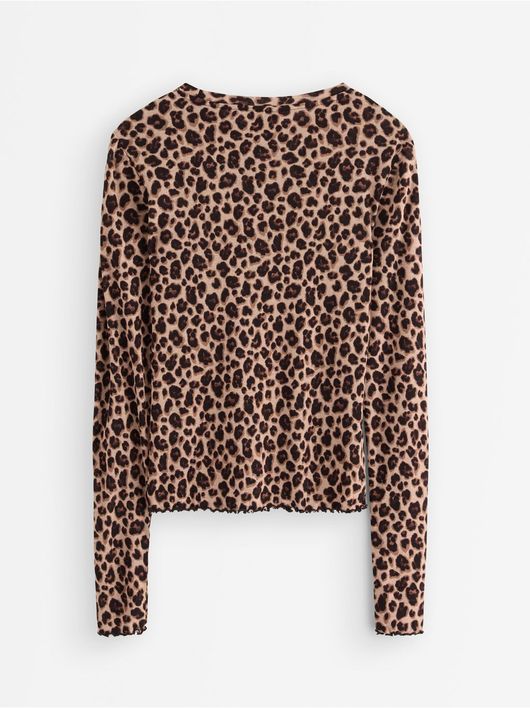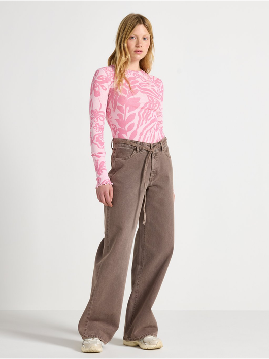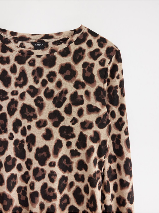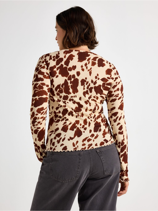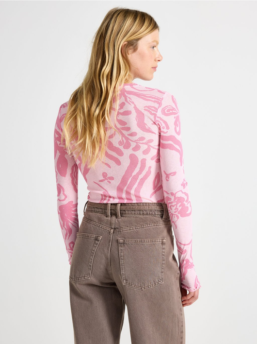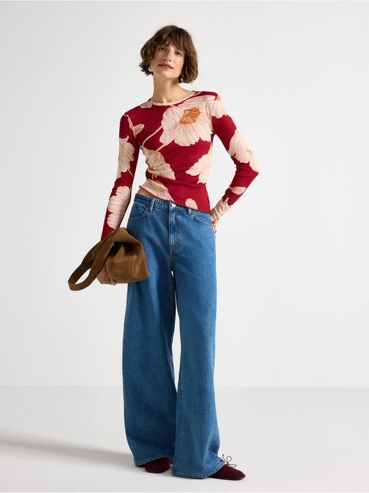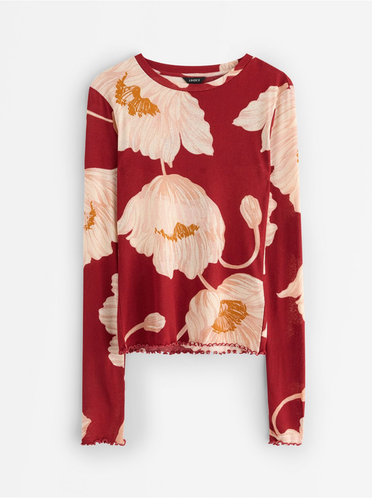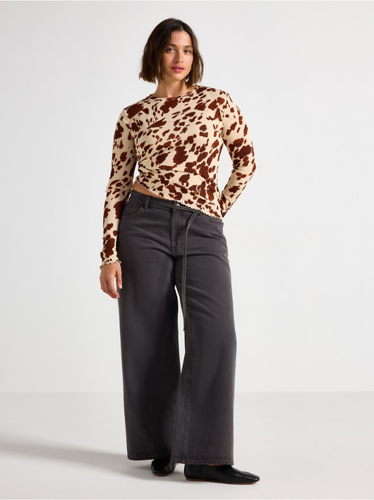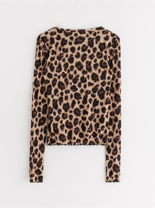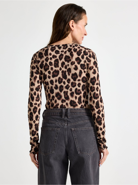 Long-sleeved top in soft, sheer jersey with a round neckline and wavy hem.
