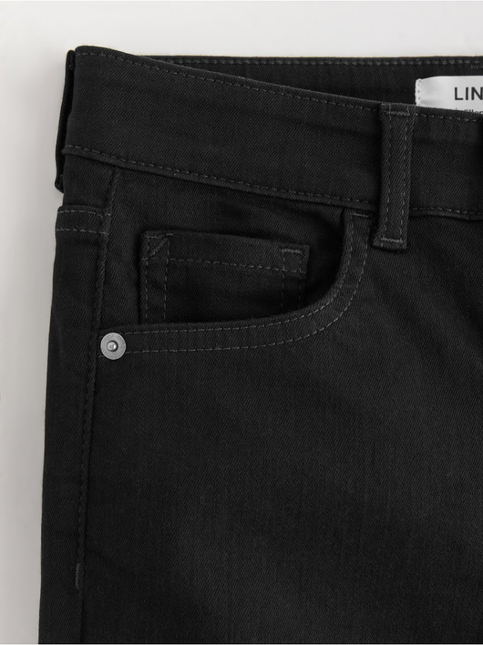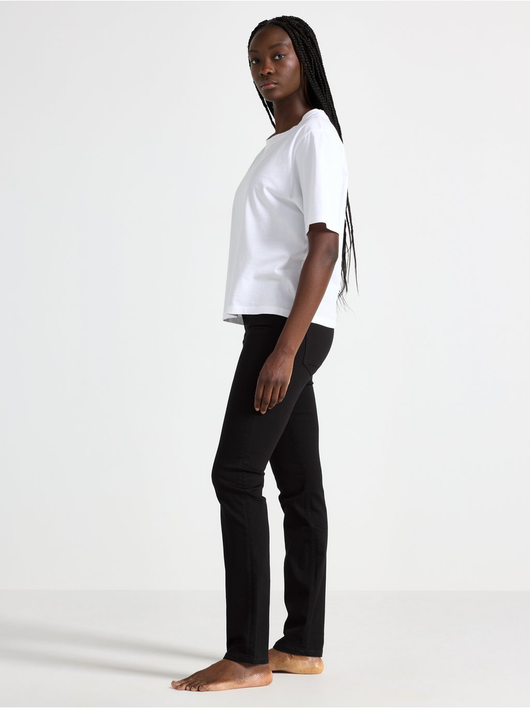 Mid waist jeans in cotton denim with stretch and straight legs.