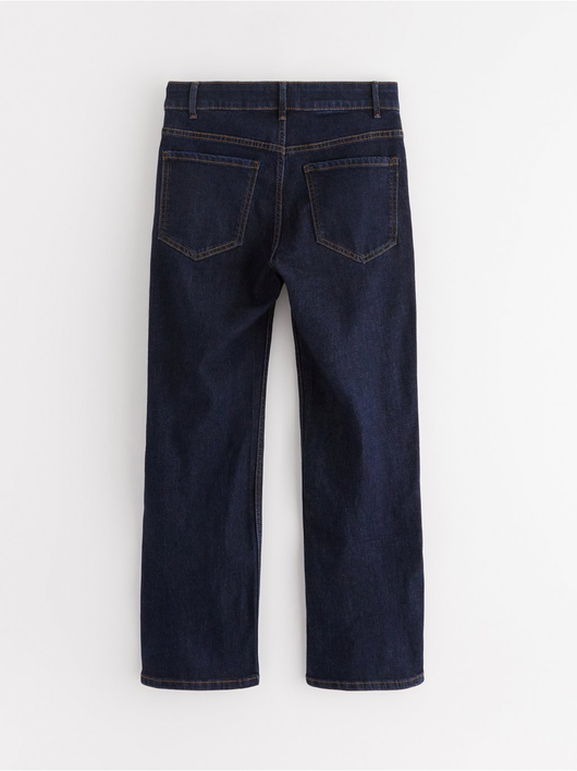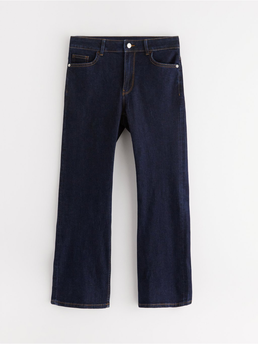 Mid waist jeans in cotton denim with stretch and flared, cropped legs.