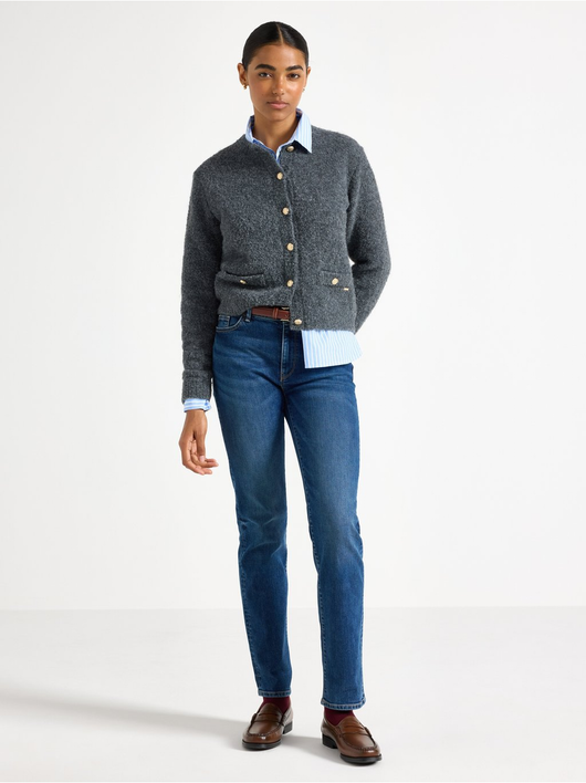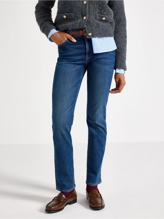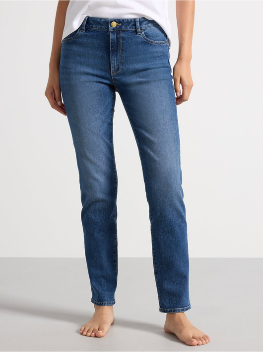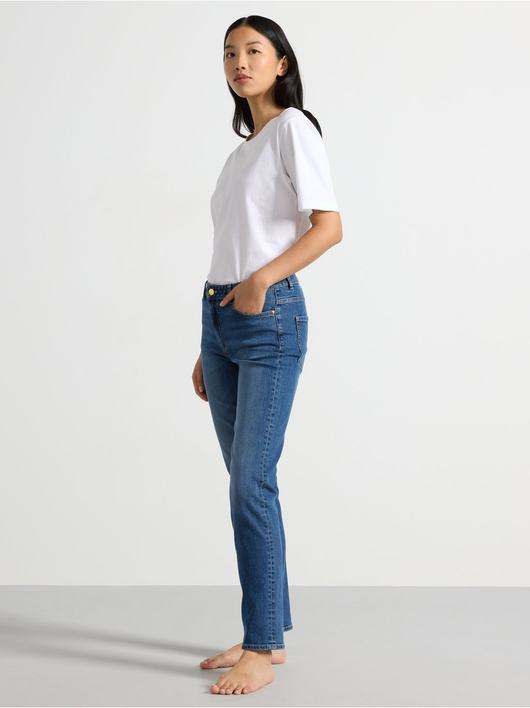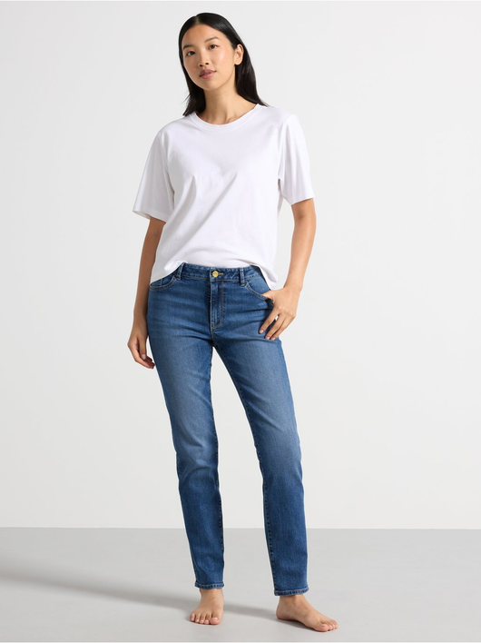 Mid waist jeans in cotton denim with stretch and slim legs.