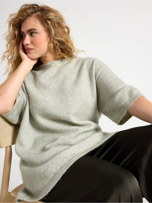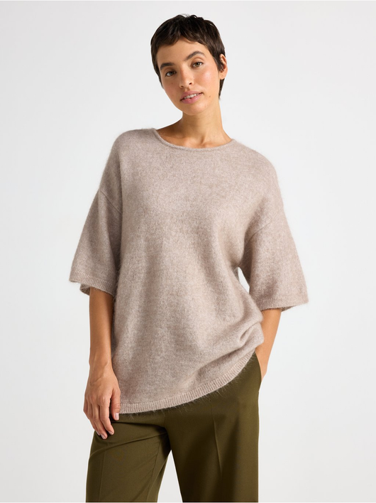 Short-sleeved knitted jumper in mohair blend with a relaxed fit.