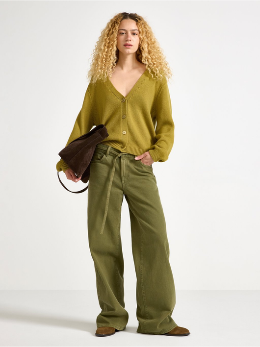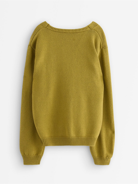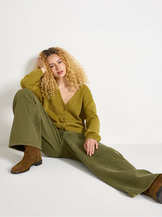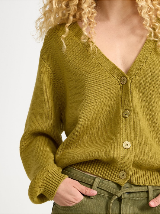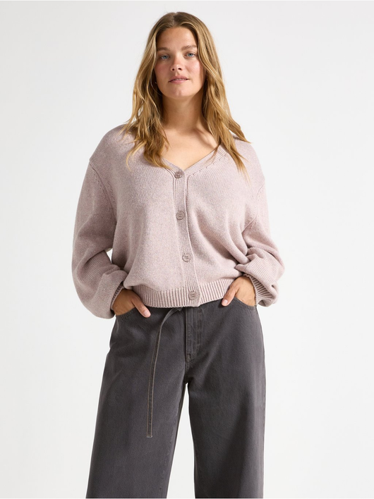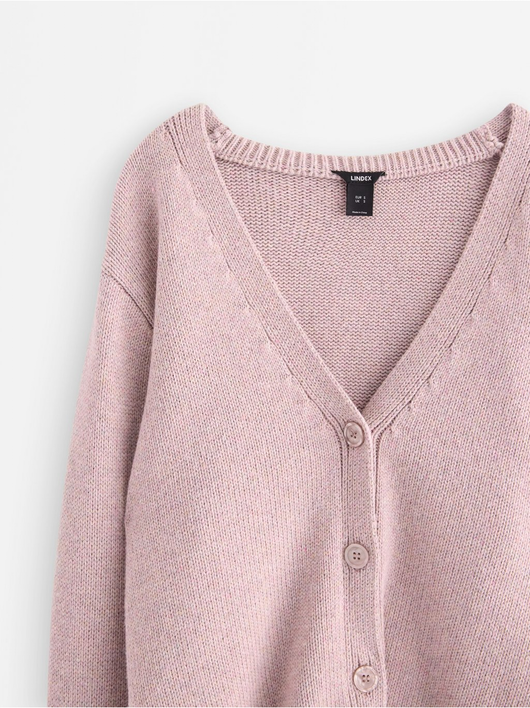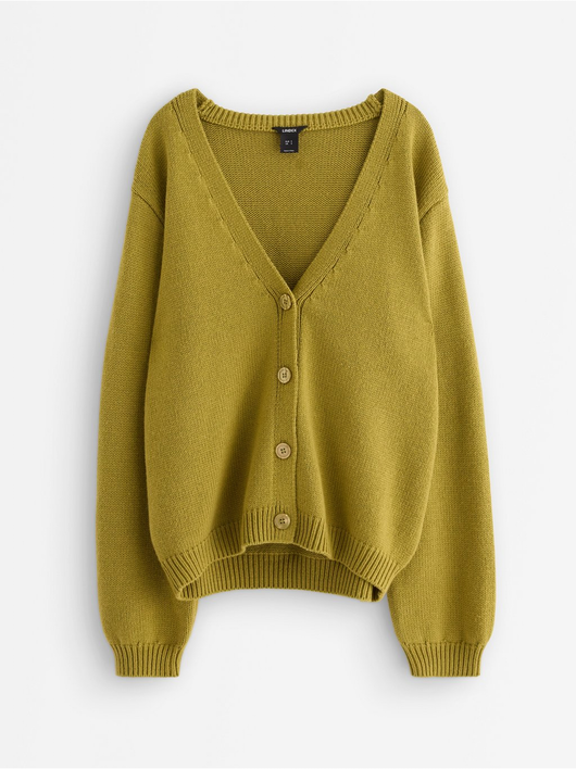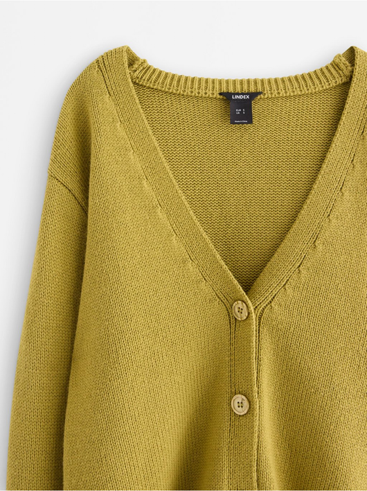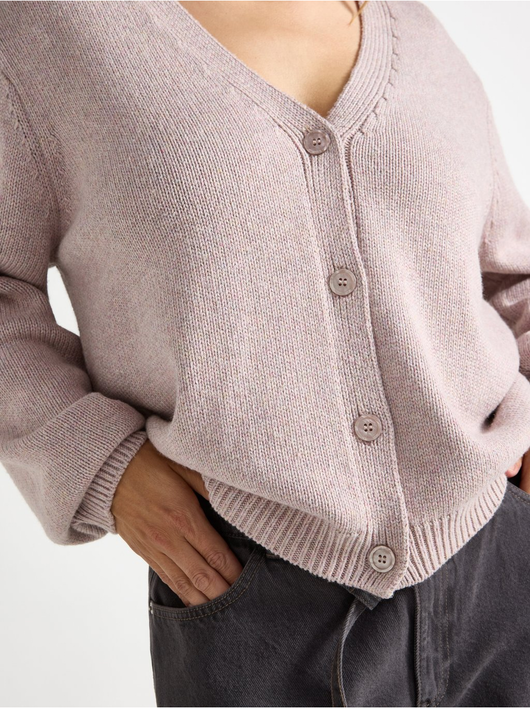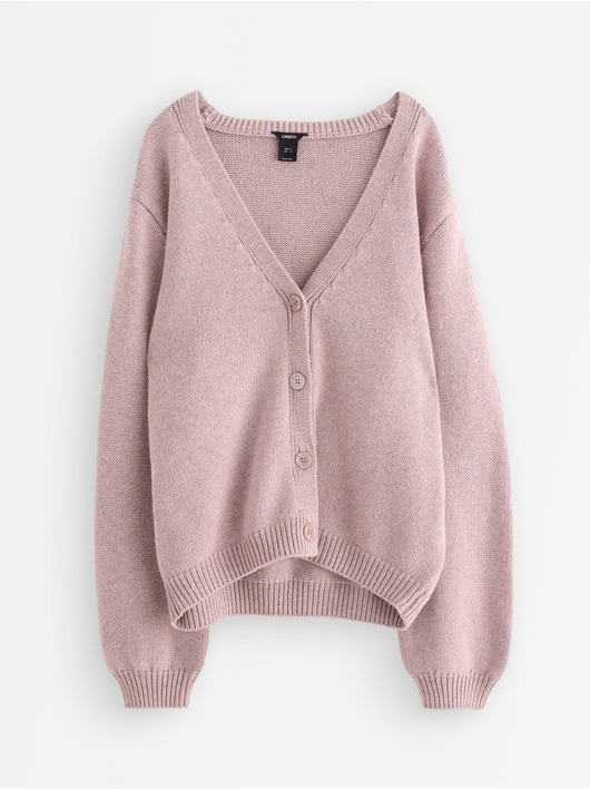 Knitted cardigan with button closure and relaxed fit.