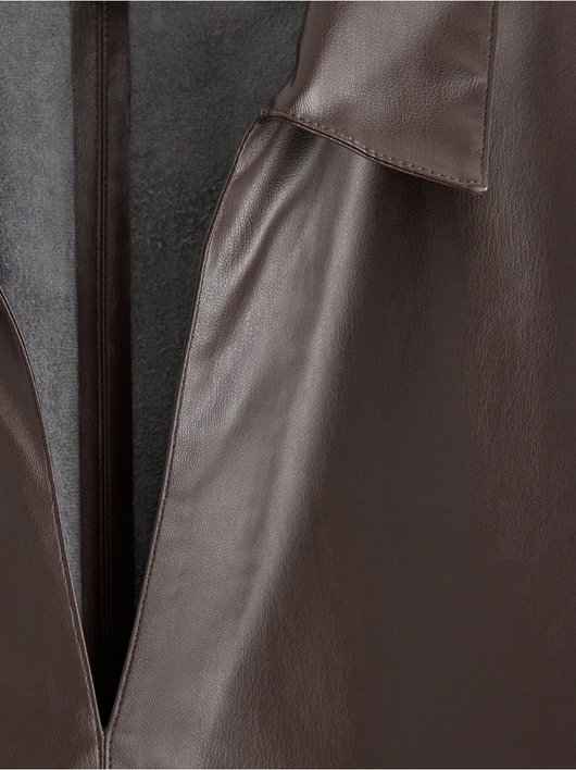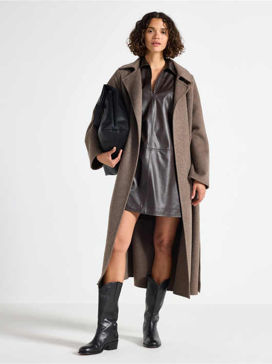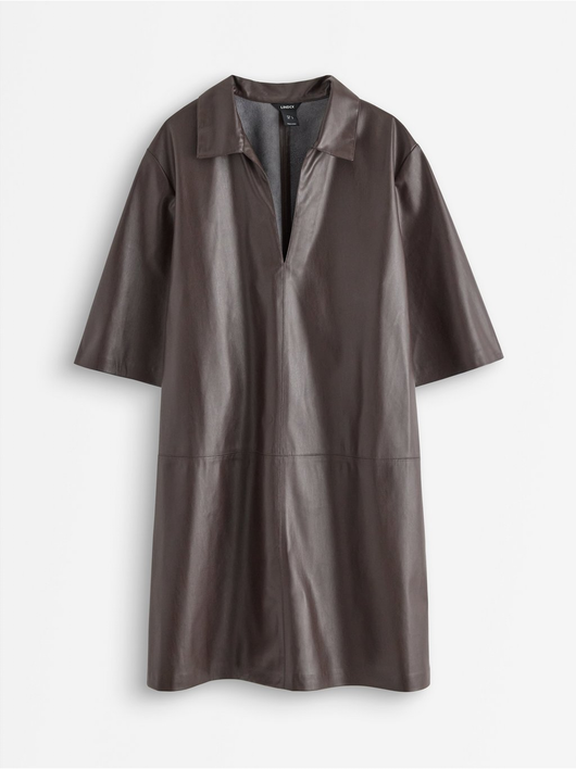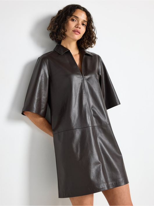Mini dress in imitation leather with short sleeves, a collared neckline and a relaxed fit.