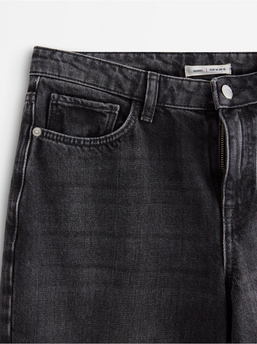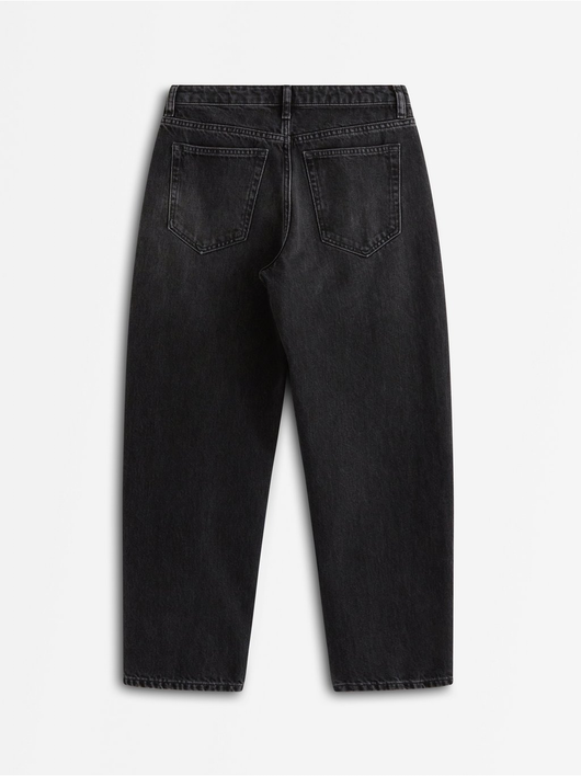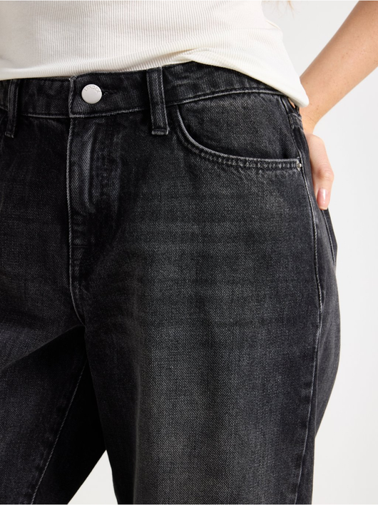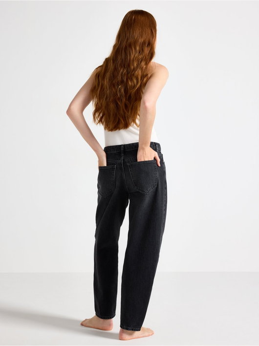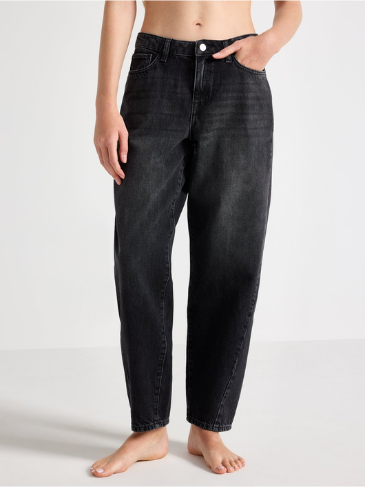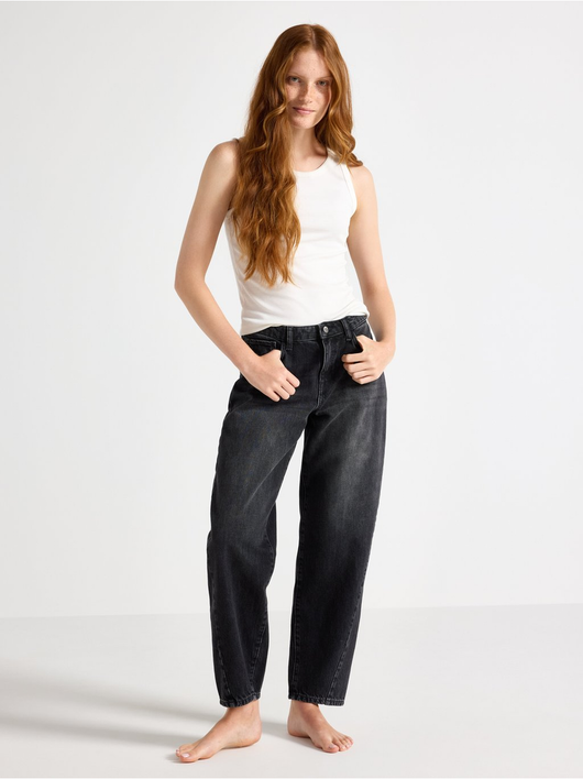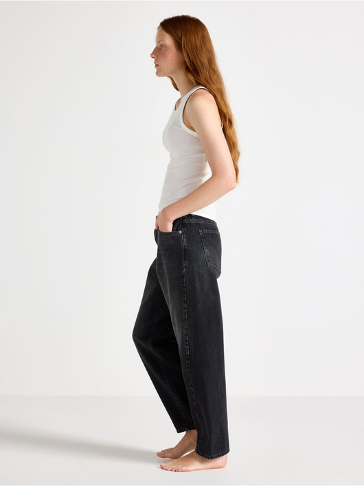 Tapered jeans in cotton denim with twisted seams, mid waist and ankle length.
