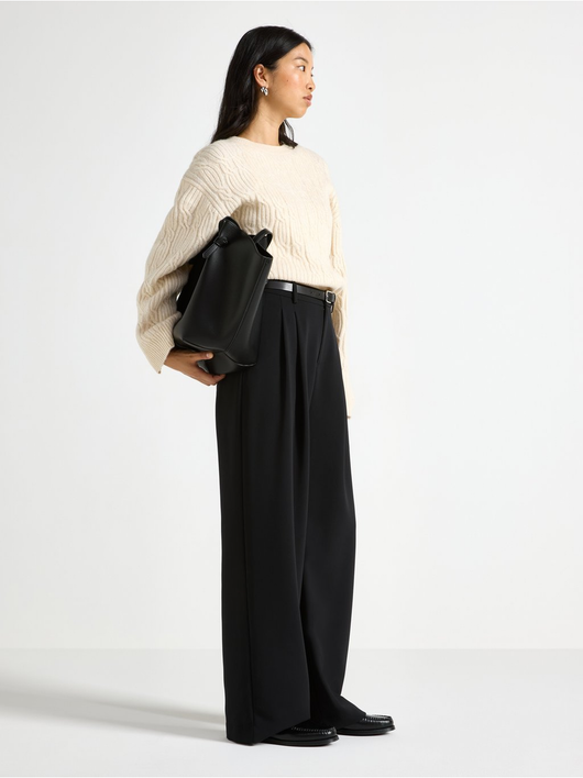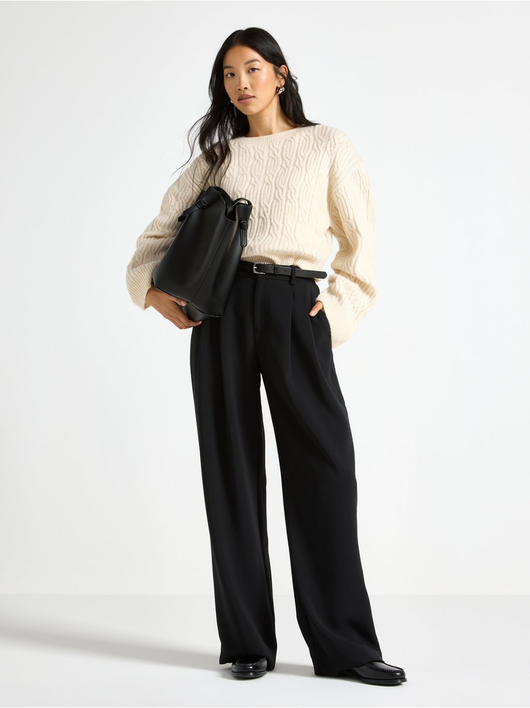 Stylish trousers with wide legs and a mid waist.