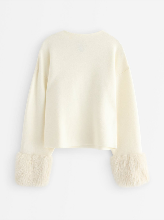 Fine-knit jumper with long sleeves and faux fur sleeve details.