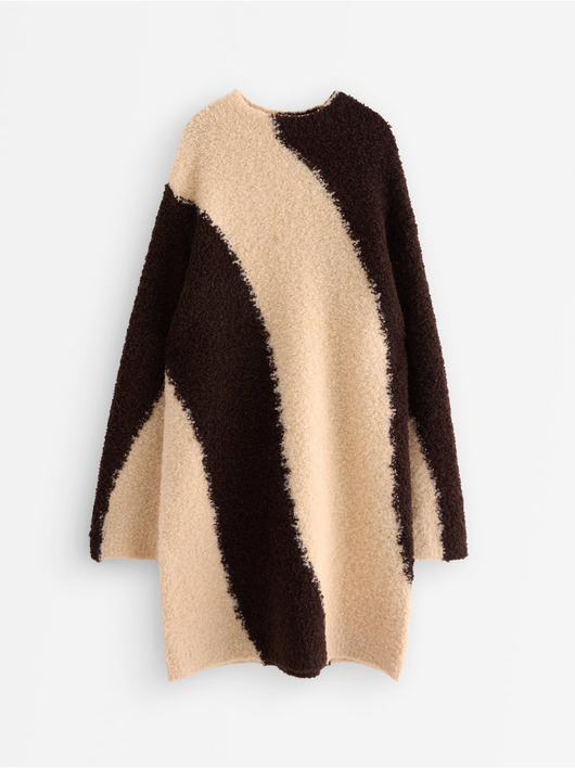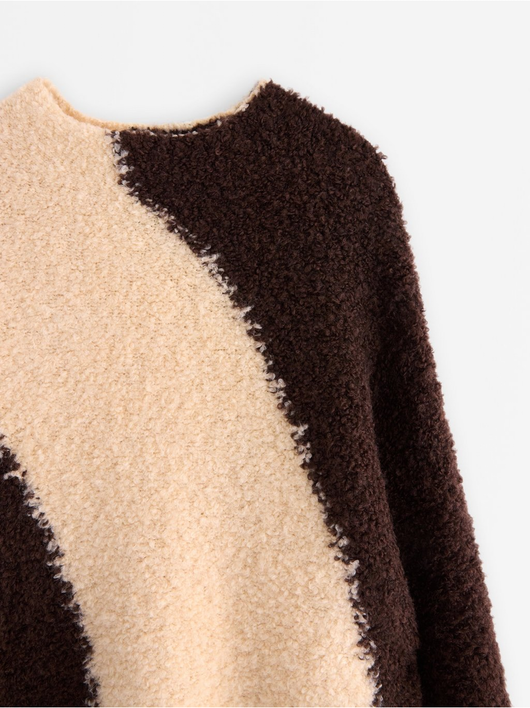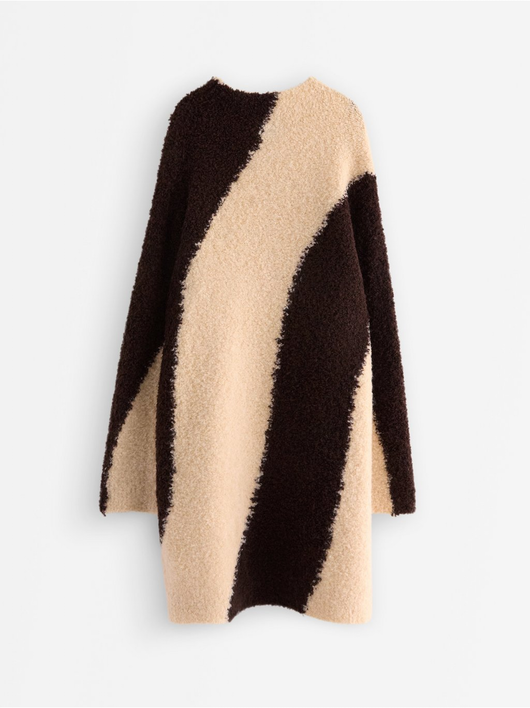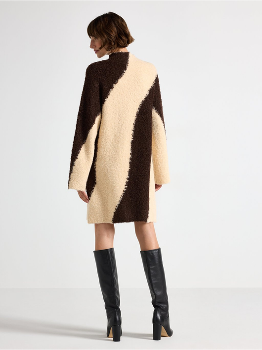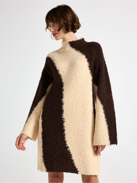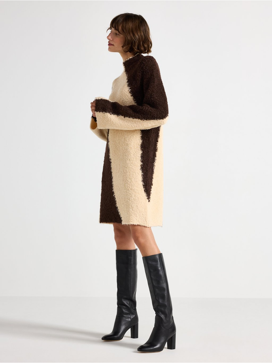 Bouclé knitted mini dress with long sleeves and mock neck.