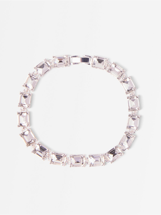 Bracelet in metal with large rhinestones.